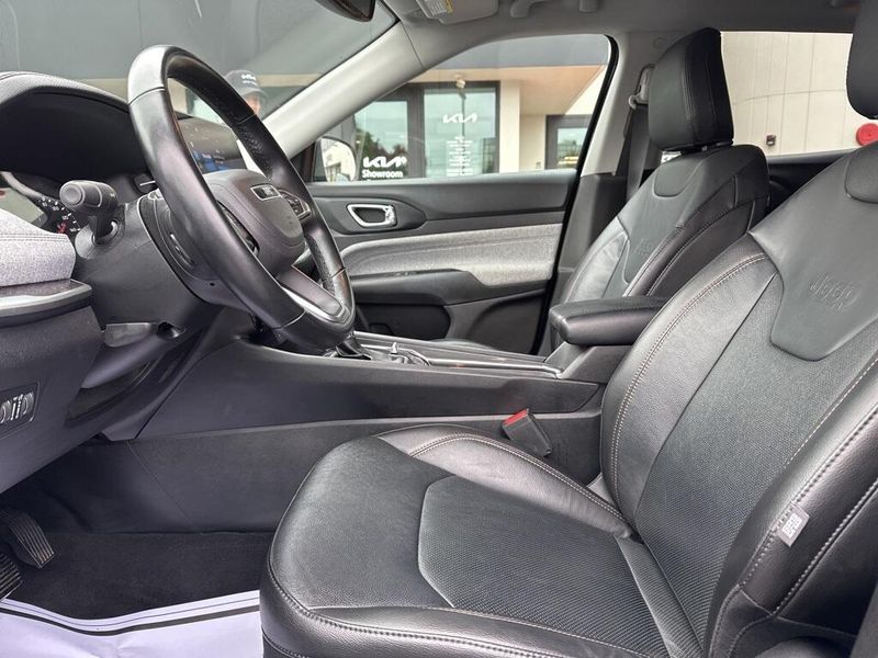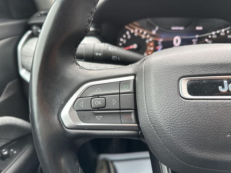 Inside, the 2023 Jeep Compass Latitude Lux 4x4 features a high-tech 10.1-inch touchscreen with Apple CarPlay and Android Auto, providing seamless smartphone integration for navigation, communication, and entertainment. The cabin offers thoughtful design details such as ambient LED lighting, a power-adjustable drivers seat with lumbar support, and heated front seats for superior comfort. Dual USB ports, 6 premium speakers, and hands-free Bluetooth connectivity enhance the daily commute or weekend escape.