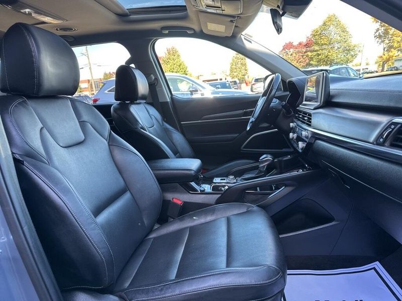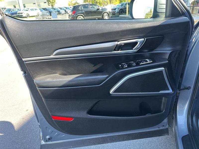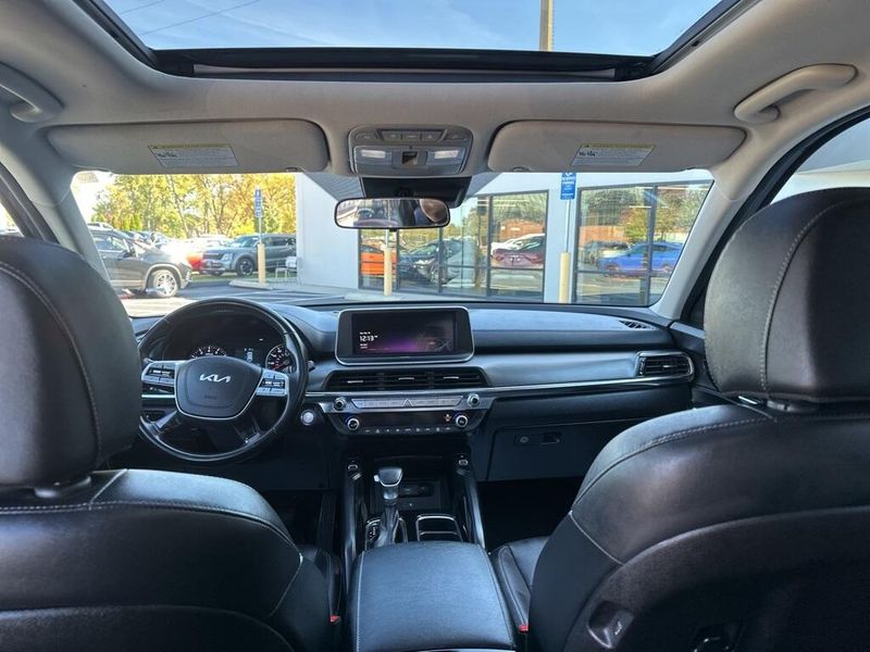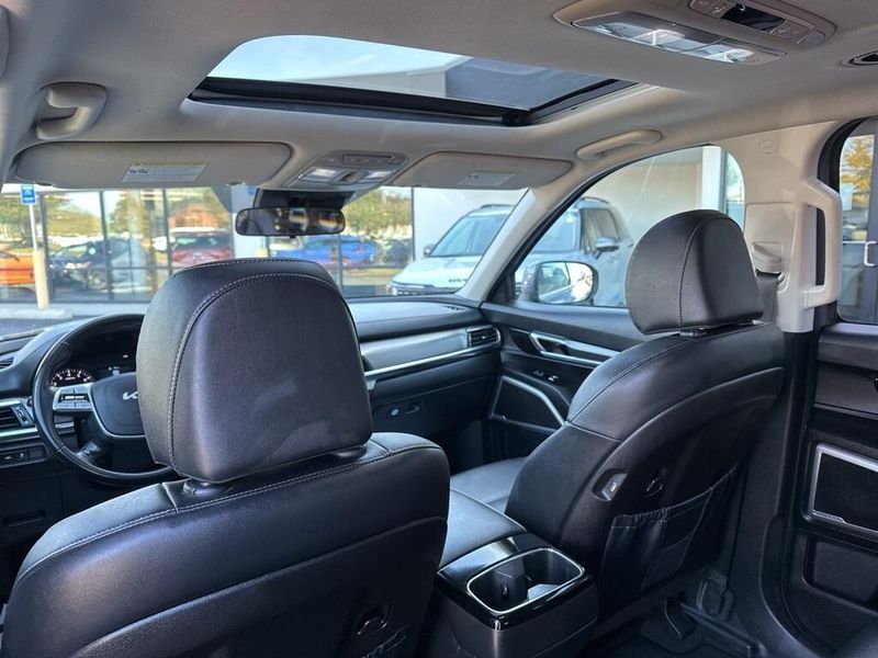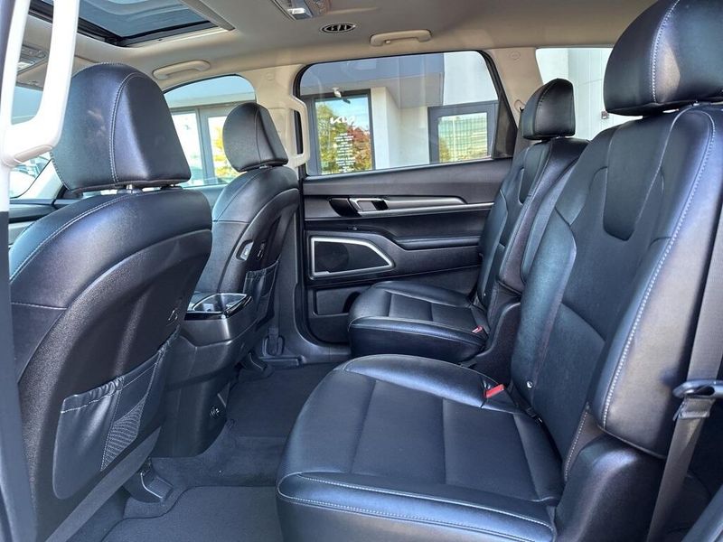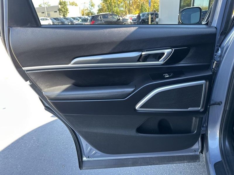 Exterior design elements emphasize sophistication and practicality. LED Daytime Running Lights, roof rails, chrome accents, and a power sunroof contribute to the Tellurides premium styling, while black body cladding and a rear lip spoiler underscore its athletic stance. The hands-free liftgate provides easy cargo access, and deep-tinted glass enhances privacy and UV protection. Every element is engineered to balance rugged functionality with upscale design.