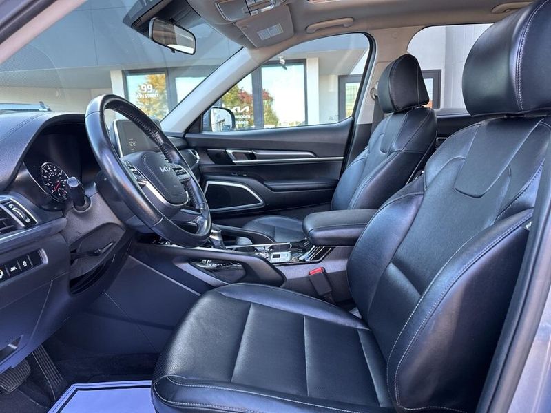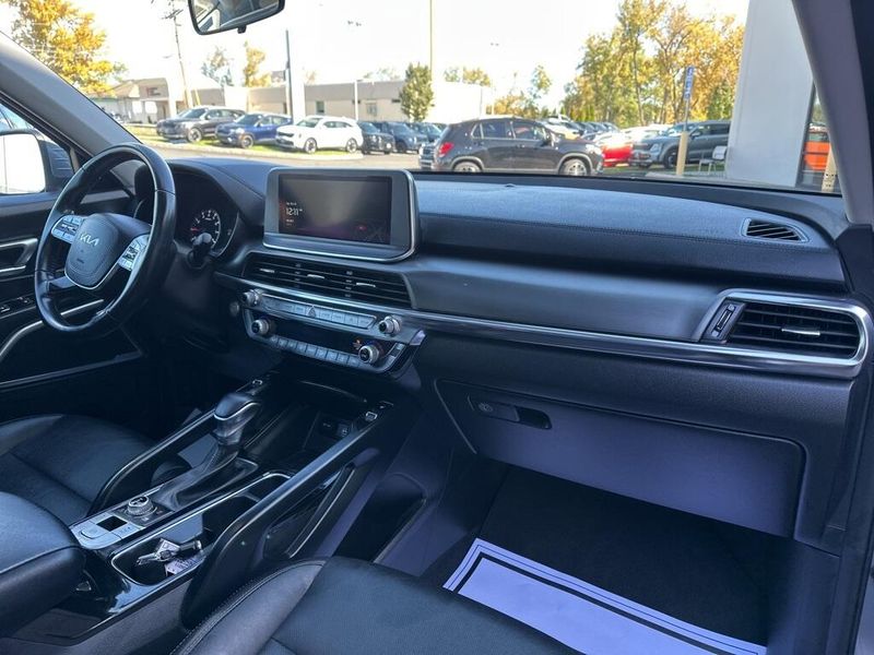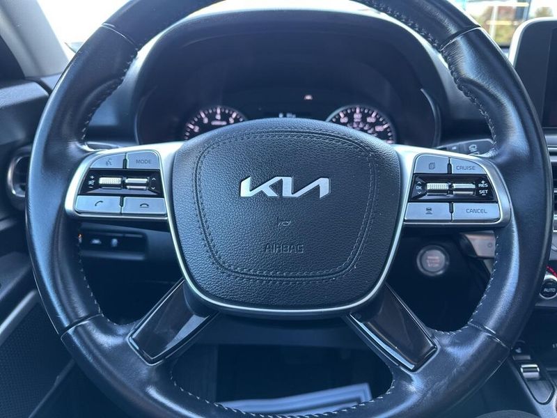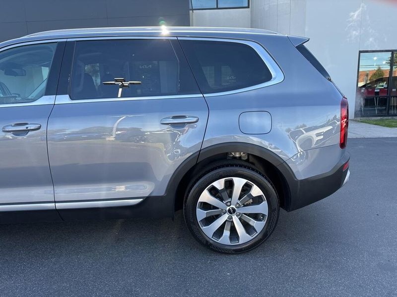 2022 Kia Telluride S AWD is the ultimate combination of bold design, refined comfort, and advanced technologycrafted for families who expect more from their midsize SUV. Finished in Everlasting Silver with a sleek Black interior, this one-owner Telluride radiates sophistication and confidence from every angle. With its commanding presence, distinctive tiger-nose grille, and 20-inch machined alloy wheels, the Telluride S stands as a symbol of modern strength and elegance, built to perform on any road with Kias renowned all-wheel drive capability.