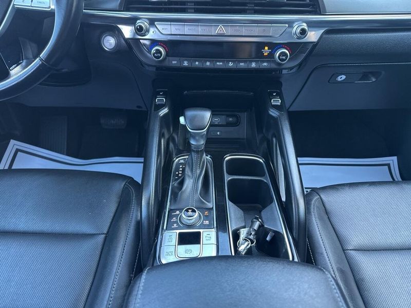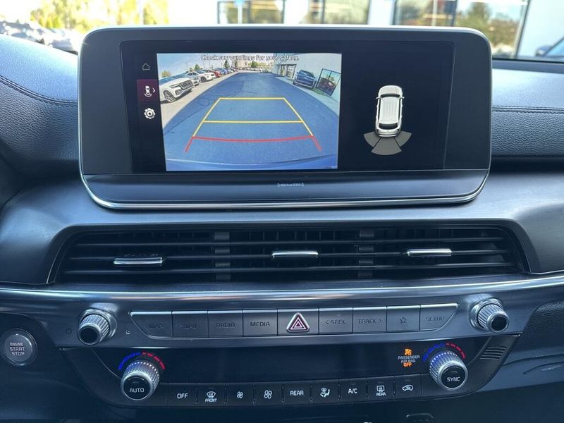 Under the hood, the Telluride S is powered by a 3.8-liter DOHC V6 engine with Dual Continuously Variable Valve Timing (CVVT), delivering smooth, refined power through an 8-speed automatic transmission. The all-wheel-drive system ensures traction and stability in all conditions, while advanced systems like Trailer Sway Control and Hill Hold Assist make towing and uphill driving effortless. The multi-link rear suspension and gas-pressurized shock absorbers enhance ride comfort and handling precision, giving the Telluride a composed, confident feel on highways and winding roads alike.