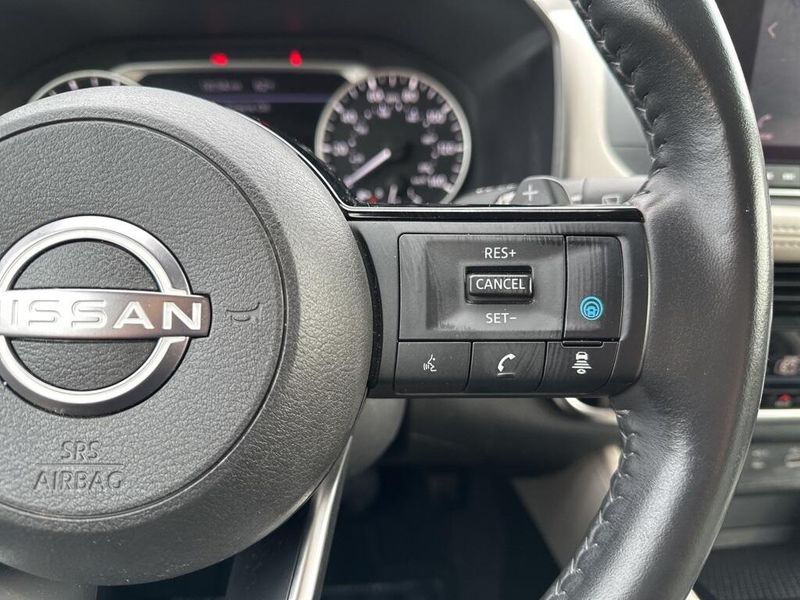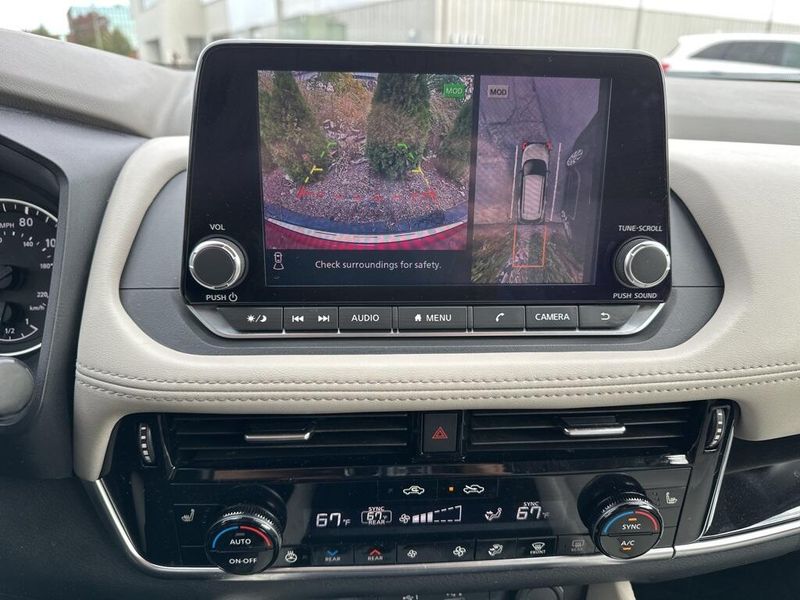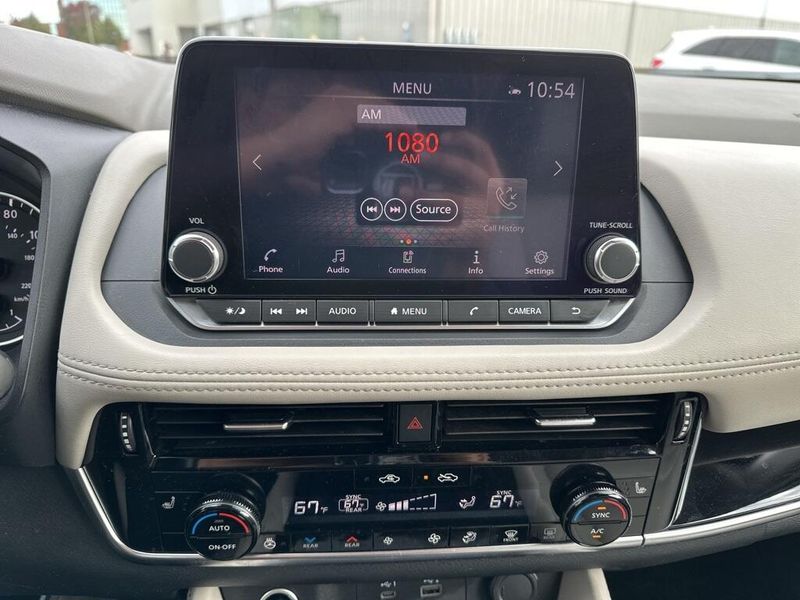 Stay connected with NissanConnect and an 8-inch color touchscreen, Apple CarPlay, Android Auto, SiriusXM (trial), Wi-Fi hotspot, Bluetooth, and NissanConnect Services powered by SiriusXM. Charging is easy with illuminated USB ports (Type-A and Type-C up front) plus rear charge-only USBs. Convenience features include Remote Engine Start with Intelligent Climate Control, Nissan Intelligent Key with 4-door request, auto-dimming inside mirror, Rear Door Alert, framelss HomeLink mirror (opt), and Interior Accent Lighting (opt).