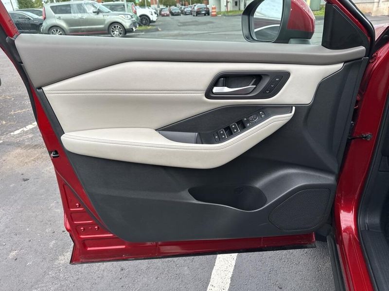 Powering the Rogue SL is a 1.5L DOHC turbocharged engine delivering 201 hp and 225 lb-ft of torque, paired to an Xtronic CVT with manual mode and paddle shifters for smooth, responsive acceleration. Intelligent All-Wheel Drive and a Drive Mode dial with terrain settings enhance traction in rain, snow, and gravel, while front independent and rear multi-link suspensions balance comfort and control. Electronic parking brake with auto-hold, 4-wheel disc brakes, and 19-inch alloy wheels round out the confident chassis.