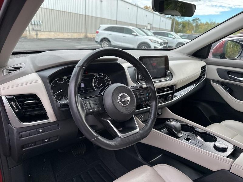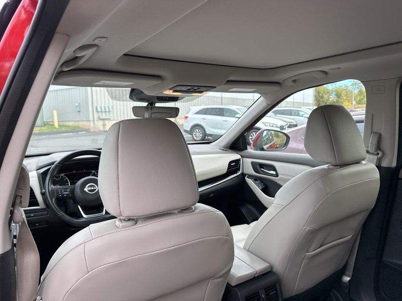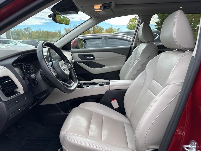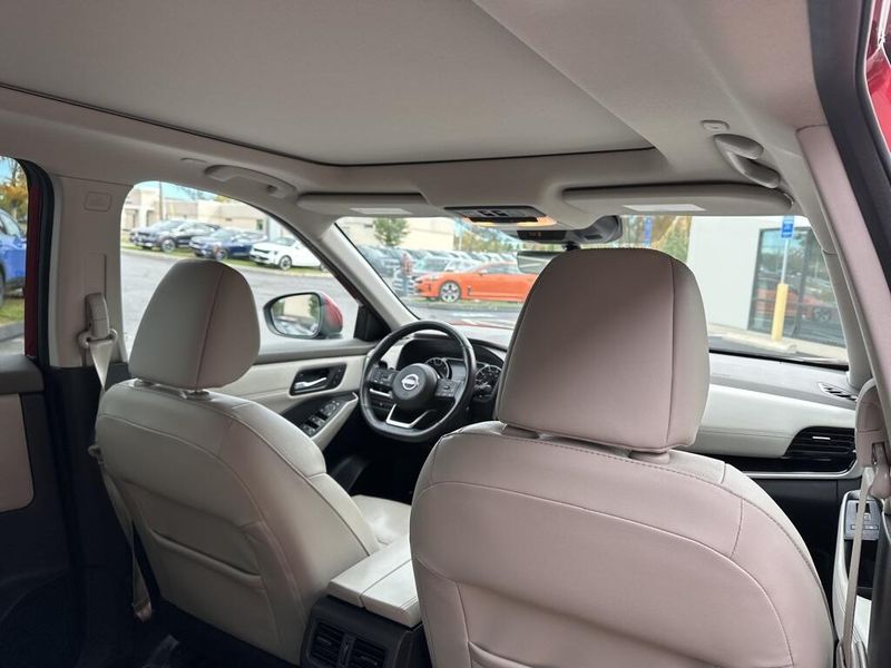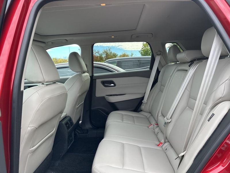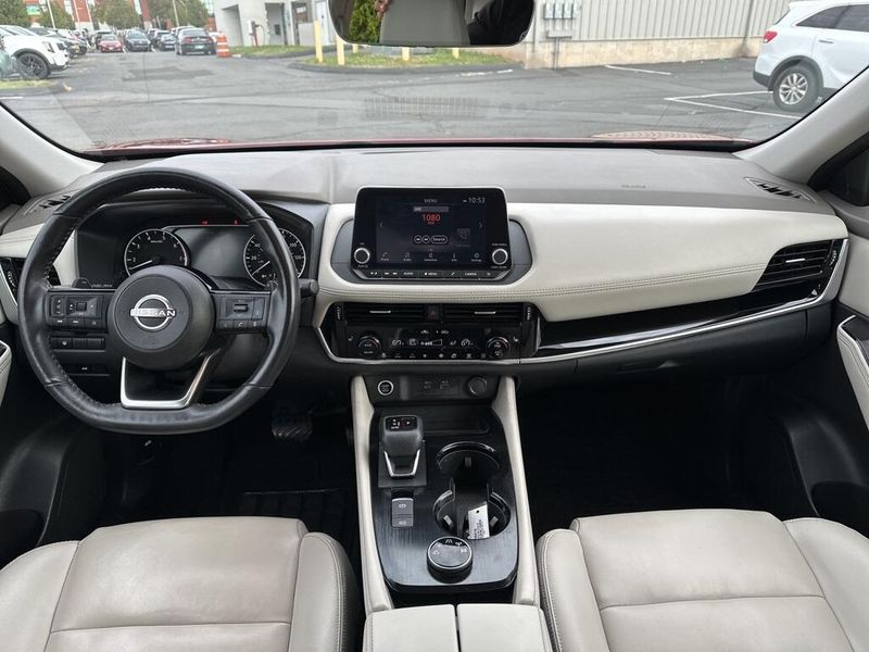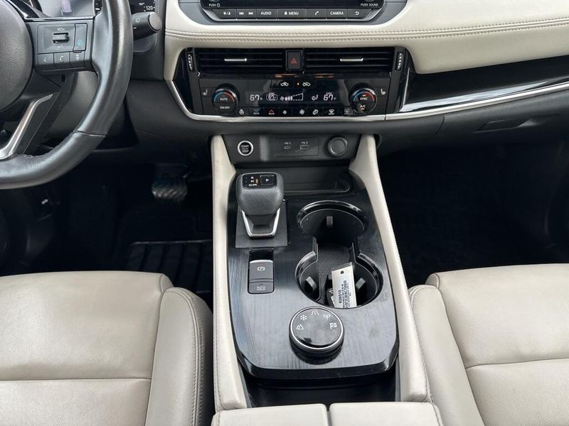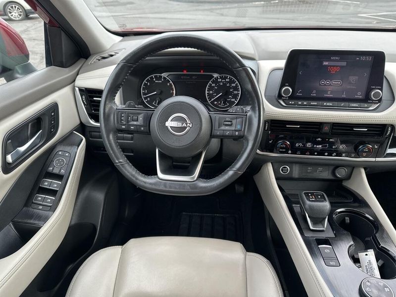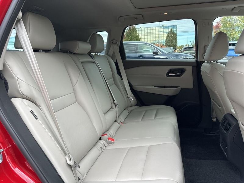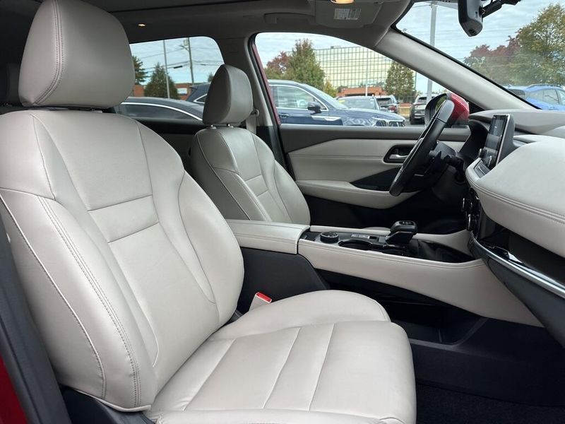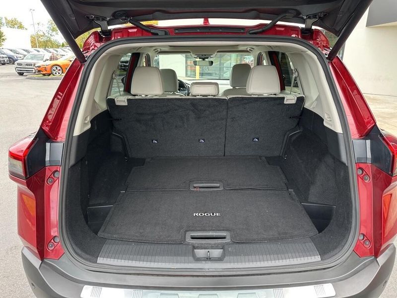 Inside, the Rogue SL surrounds you with comfort and convenience. Leather-appointed seats, Quick Comfort heated front seats, and a heated leather-wrapped steering wheel keep you cozy, while tri-zone automatic temperature control and 2nd-row air vents maintain ideal cabin climate. Seating flexibility comes from an 8-way power drivers seat with 2-way power lumbar, drivers memory (seat & mirrors), 4-way power front passenger seat, and a 60/40 split, reclining second row. The cargo area is smartly organized with Hands-free power liftgate and Divide-N-Hide panels for configurable storage.