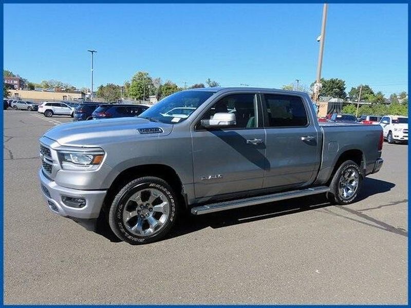 CARFAX One-Owner. Billet Silver Metallic Clearcoat 2022 Ram 1500 Big Horn/Lone Star 4WD 8-Speed Automatic HEMI 5.7L V8 Multi Displacement VVT 1500 Big Horn/Lone Star, HEMI 5.7L V8 Multi Displacement VVT, Billet Silver Metallic Clearcoat, 115V Auxiliary Power Outlet, 115V Auxiliary Rear Power Outlet, 2nd Row In Floor Storage Bins, 3 Rear Seat Head Restraints, 4 Way Front Headrests, 400W Inverter, 4G LTE Wi-Fi Hot Spot, 8.4'' Touchscreen Display, Air Conditioning ATC w/Dual Zone Control, All Plant-Installed Decals, Apple CarPlay, Auto-Dimming Exterior Driver Mirror, Auto-Dimming Rear-View Mirror, Big Horn Badge, Big Horn Level 2 Equipment Group, Black Exterior Mirrors, Black Interior Accents, Black Premium Power Mirrors, Bluetooth Handsfree Phone & Audio, Body Color Exterior Mirrors, Body Color Front Bumper, Body Color Premium Power Mirrors, Body Color Rear Bumper w/Step Pads, Bridgestone Brand Tires, Bucket Seats, Class IV Receiver Hitch, Cluster 7.0'' TFT Color Display, Connectivity - US/Canada, Convex Wide-Angle Mirror Insert, Delete LED Lamp - Floor Console Bin, Deluxe Cloth Bucket Seats, Exterior Mirrors Courtesy Lamps, Exterior Mirrors w/Heating Element, Exterior Mirrors w/Supplemental Signals, For Details, Visit DriveUconnect.com, Front LED Fog Lamps, Front Seat Back Map Pockets, Full Length Floor Console, Global Telematics Box Module (TBM), Glove Box Lamp, Google Android Auto, GPS Antenna Input, GPS Navigation, Heated Front Seats, Heated Steering Wheel, Integrated Center Stack Radio, LED Reflector Headlamps, LED Taillamps, Manual Adjust 4-Way Front Passenger Seat, Media Hub w/2 Charge Only USBs, ParkSense Front/Rear Park Assist w/Stop, Power 2-Way Driver Lumbar Adjust, Power 8-Way Driver Seat, Power Adjustable Pedals, Power-Folding Mirrors, Premium Lighting Group, Quick Order Package 25Z Big Horn, Radio: Uconnect 5 W w/8.4'' Display, Rear 60/40 Folding Seat, Rear Center Armrest, Rear Dome w/On/Off Switch Lamp, Rear Power Sliding Window, Rear Window Defroster, Remote Start System, Security Alarm, SiriusXM Radio Service, SiriusXM Satellite Radio, Sport Appearance Package, Sport Decal, Sun Visors w/Illuminated Vanity Mirrors, Universal Garage Door Opener, USB Host Flip.
