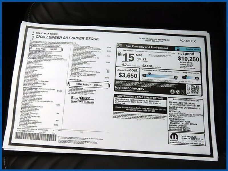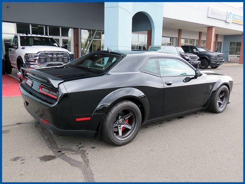 CARFAX One-Owner. Clean CARFAX. Pitch Black Clearcoat 2023 Dodge Challenger SRT Super Stock RWD 8-Speed Automatic 6.2L V8 Supercharged 6.2L V8 Supercharged, RWD, Pitch Black Clearcoat, Black Leather, 1 Year NMCA/NHRA Membership, 18 Speakers Premium Audio System, 2-PC Hellcat Fender Badge, 220 MPH Primary Speedometer, 3.09 Rear Axle Ratio, Alcantara Appearance Package DISC), Alcantara/Laguna Seats w/Logo, Auto High Beam Headlamp Control, Badge Delete, Black Exterior Badging (DISC), Blind Spot & Cross Path Detection, Body Color Exterior Mirrors, Brembo 4-Piston Fixed Caliper Brakes, Carbon/Suede Interior Package (DISC), Dark Engine Turn Interior Accents, Driver Convenience Group, Exterior Mirrors w/Heating Element, GPS Navigation, harman/kardon Audio Group w/Subwoofer, harman/kardon GreenEdge Amp, Heated Front Seats, Heated Steering Wheel, Hellcat Logo Nappa/Alcantara Seat, High Performance Engine Controller, High-Intensity Discharge Headlamps, Plus Package, Power Multi-Function Foldaway Mirrors, Power Tilt/Telescope Steering Column, Premium-Stitched Dash Panel, Quick Order Package 27S SRT Super Stock (DISC), Radio/Driver Seat/Mirrors Memory, Rain Sensitive Windshield Wipers, Real Carbon Fiber Interior Accents, Red LED Alcantara Steering Wheel, Redeye Badging, Satin Black Dodge Tail Lamp Badge, SRT Black Package (DISC), SRT Grille Badge, SRT Power Chiller, SRT Spoiler Badge, Suede Door Trim Panel w/Map Pocket, Suede Headliner, Super Stock Suspension, Surround Sound, Technology Group, Trunk Mounted Subwoofer, Ventilated Front Seats, Wheels: 18'' x 11.0'' Aluminum (DISC), Widebody Fender Flares.