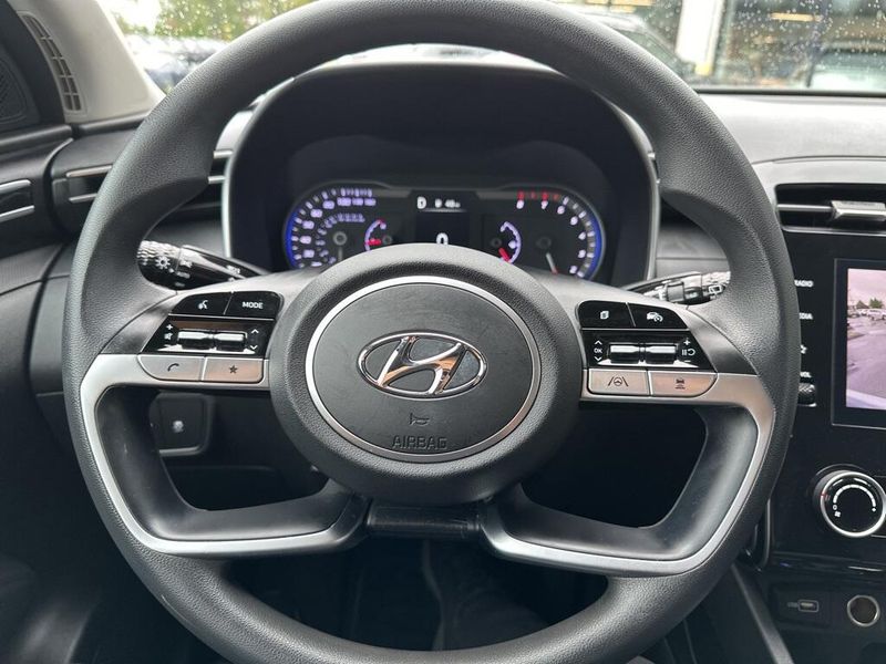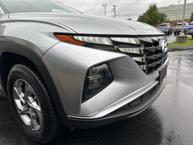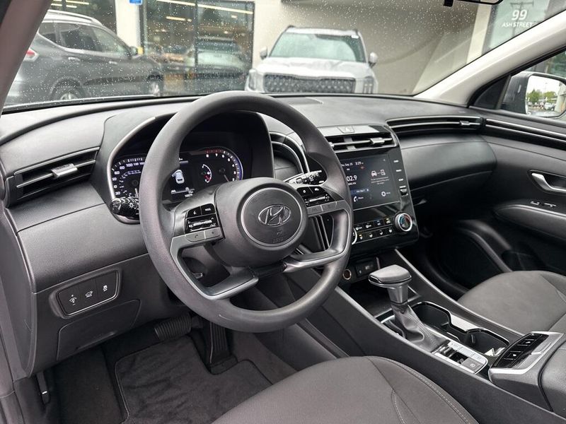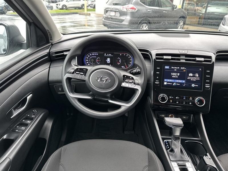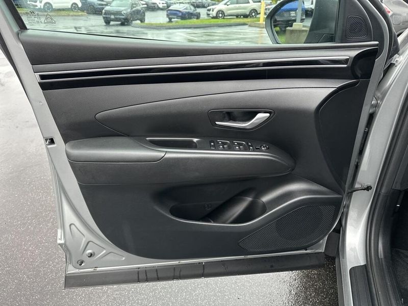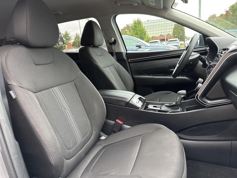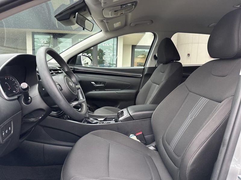 2023 Hyundai Tucson SEL AWD combines refined styling, advanced safety, and everyday convenience, making it a standout in the competitive SUV market. With a Shimmering Silver exterior paired with a sleek Black interior, this Tucson delivers a premium look and feel, offering a modern design thats both practical and stylish. Its bold lines, distinctive LED lighting, and 17-inch alloy wheels showcase a confident road presence that matches its versatile performance.