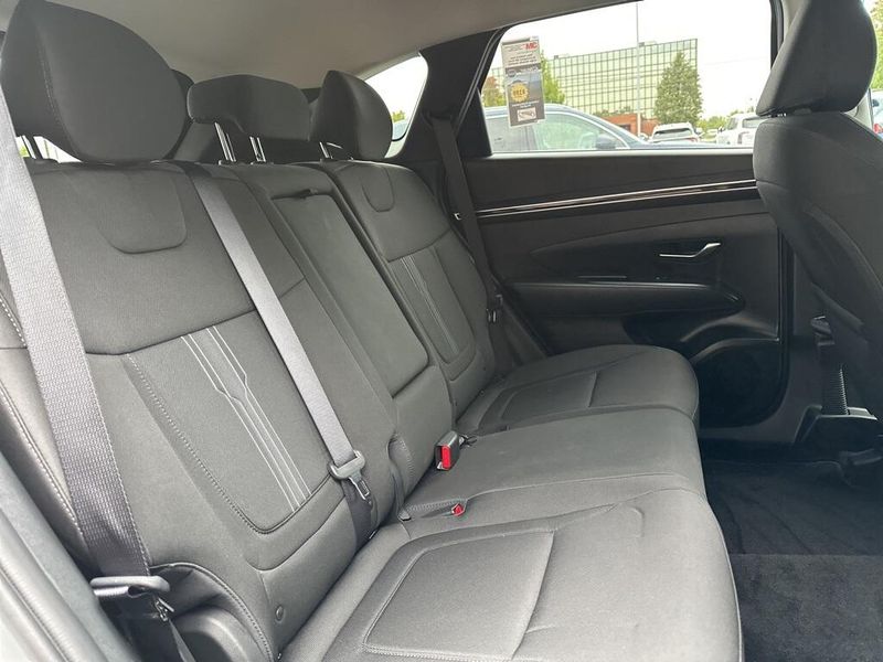Inside, the Tucson SEL offers a modern, comfortable cabin tailored for convenience. Heated front seats, a power-adjustable drivers seat with lumbar support, dual-zone climate control, rear air vents, and proximity key with push-button start enhance daily driving. The interior also includes wireless device charging, Hyundai Digital Key, and smart storage solutions, making it as practical as it is comfortable.