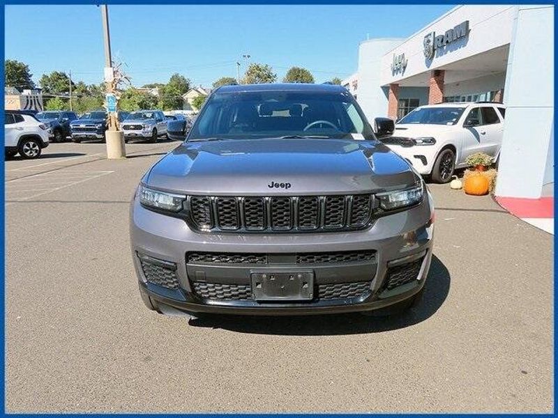 CARFAX One-Owner. Clean CARFAX. Certified. Baltic Gray Metallic Clearcoat 2023 Jeep Grand Cherokee L Limited 4WD 8-Speed Automatic 3.6L V6 24V VVT 3.6L V6 24V VVT, Baltic Gray Metallic Clearcoat, 506 Watt Amplifier, 9 Amplified Speakers w/Subwoofer, Active Noise Control System, Air Conditioning, Automatic temperature control, Black Appearance Package, Front dual zone A/C, Gloss Black Exterior Accents, Memory seat, Molded In Color Black/Gloss Black Roof Rails, Power driver seat, Power steering, Power windows, Quick Order Package 22E, Radio: Uconnect 5 Nav w/10.1'' Display, Rear air conditioning, Rear window defroster, Remote keyless entry, Steering wheel mounted audio controls, Wheels: 20'' x 8.5'' Gloss Black Painted Aluminum.