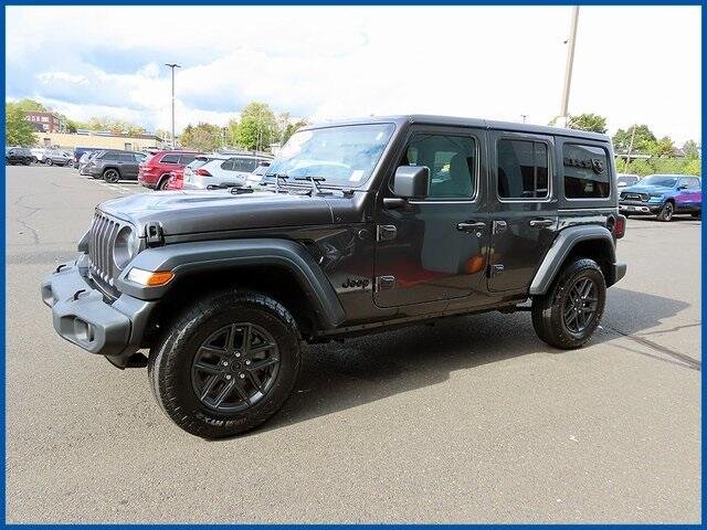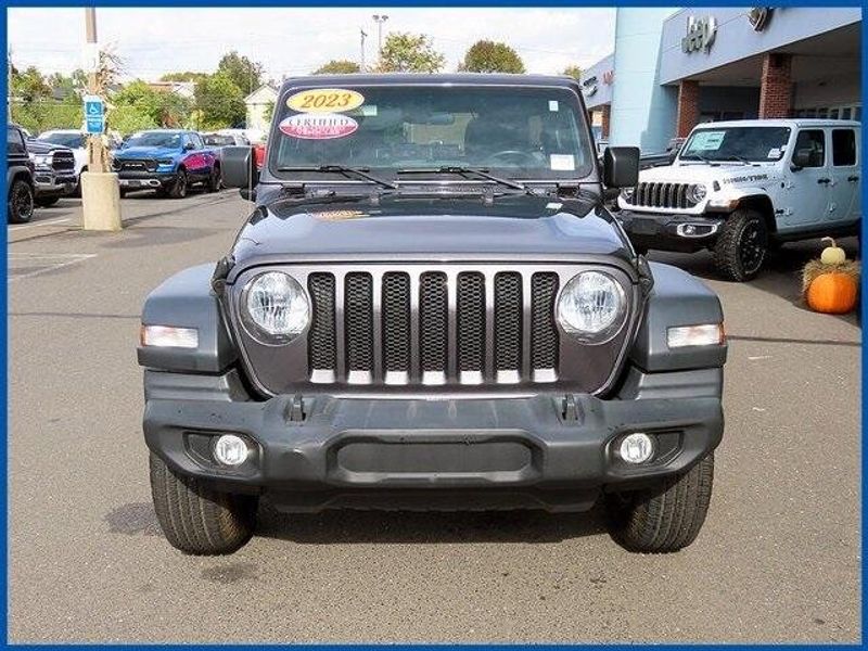 CARFAX One-Owner. Certified. Granite Crystal Metallic Clearcoat 2023 Jeep Wrangler Sport S 4WD 8-Speed Automatic 3.6L V6 24V VVT 3.6L V6 24V VVT, Granite Crystal Metallic Clearcoat, 2-Door Passive Entry, Front Door Locks, 8 Speakers, Air Conditioning w/Auto Temperature Control, Air Filtering, AM/FM radio, Apple CarPlay, Automatic Headlamps, Cluster 7.0'' TFT Color Display, Cold Weather Group, Convenience Group, Deep Tint Sunscreen Windows, Front 1-Touch Down Power Windows, Heated Front Seats, Heated Steering Wheel, Power Heated Mirrors, Premium Wrapped Steering Wheel, Quick Order Package 25S Sport S, Radio: Uconnect 4 w/7'' Display, Remote Keyless Entry, Security Alarm, SiriusXM Satellite Radio, Speed Sensitive Power Locks, Sport S, Sun Visors w/Illuminated Vanity Mirrors, Technology Group, Universal Garage Door Opener, Wheels: 17'' x 7.5 Tech Silver Aluminum.