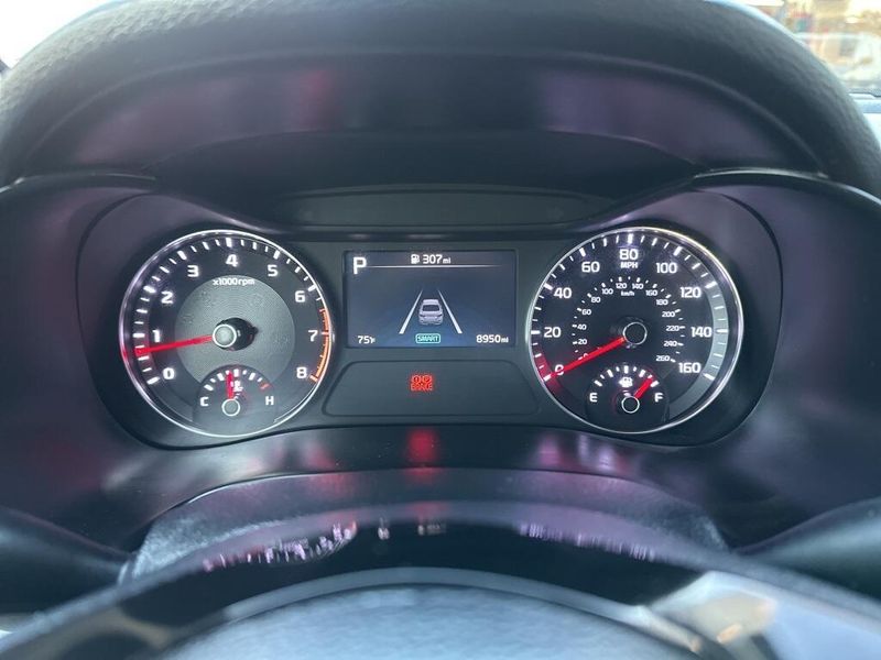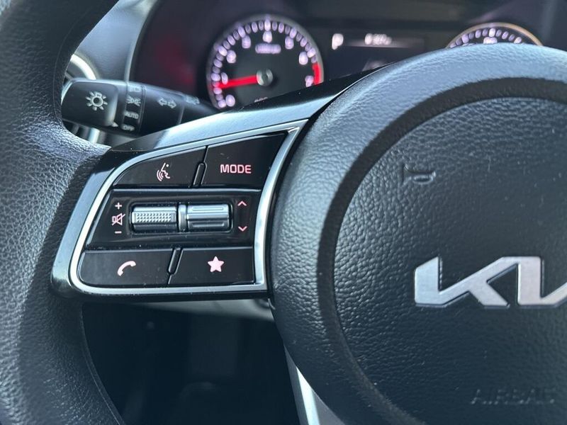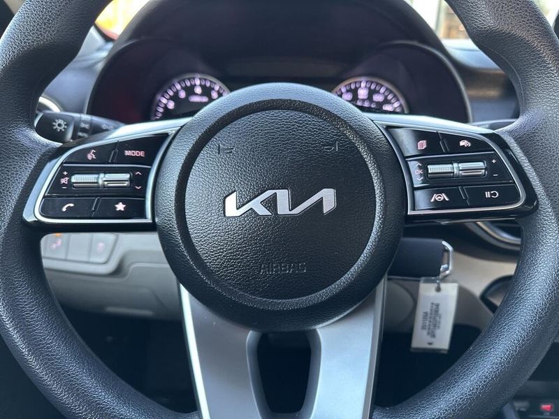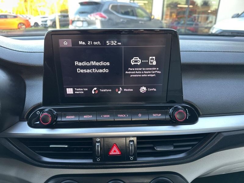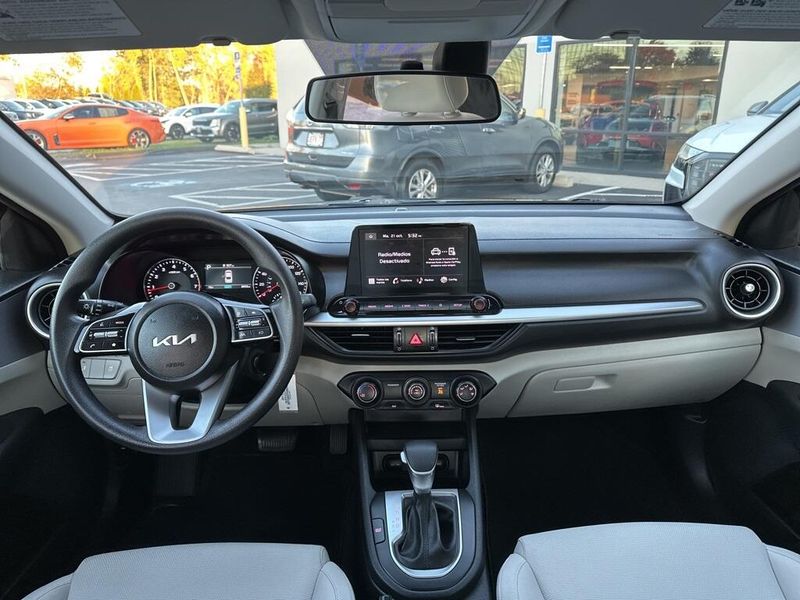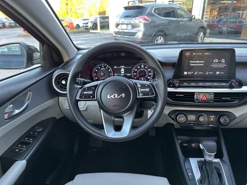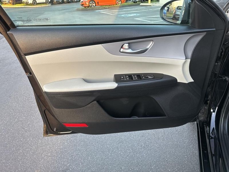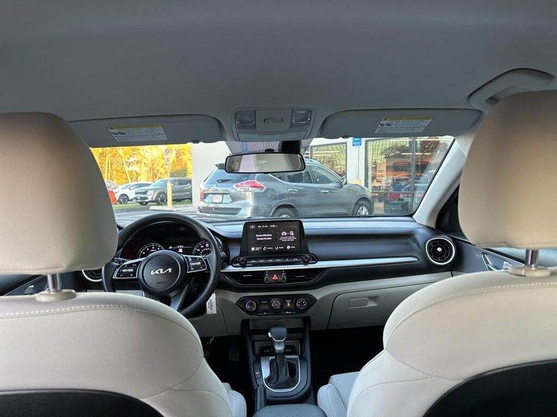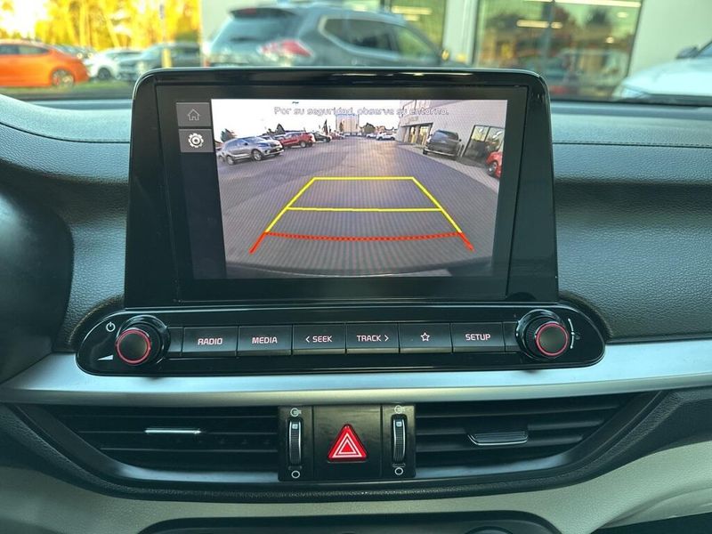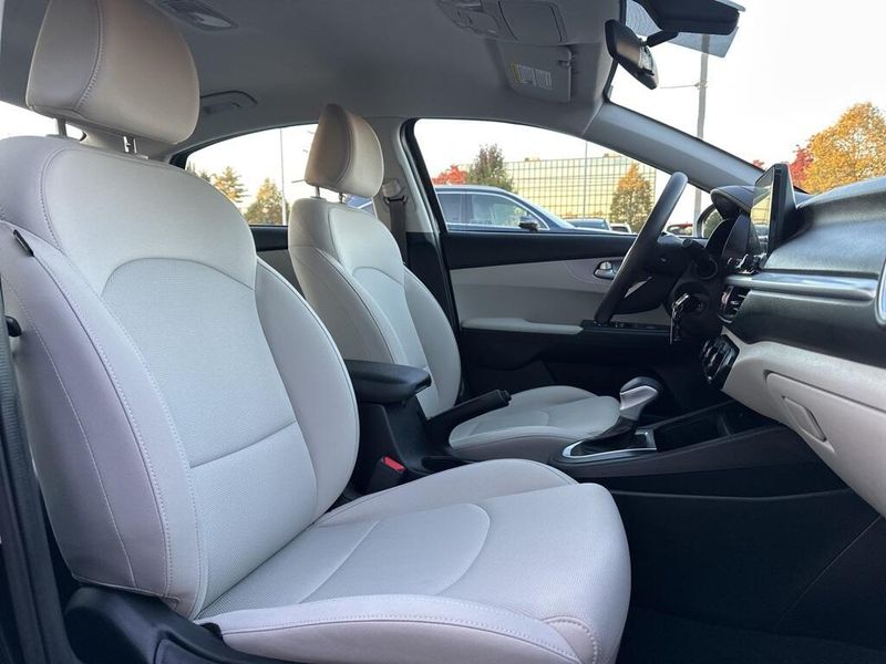 Inside, the cabin offers exceptional comfort and thoughtful design. The 6-way adjustable drivers seat, premium cloth upholstery, and full carpeted floor covering create a comfortable environment for daily driving or long commutes. The 8-inch touchscreen display with Apple CarPlay and Android Auto integration provides seamless access to music, navigation, and smartphone apps, while the Bluetooth hands-free system keeps communication effortless and safe. The Digital Driver Information Center, manual tilt/telescoping steering column, and metallic interior accents reflect the Fortes focus on driver convenience and contemporary style.
