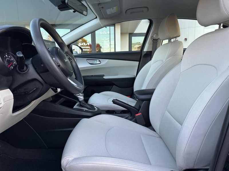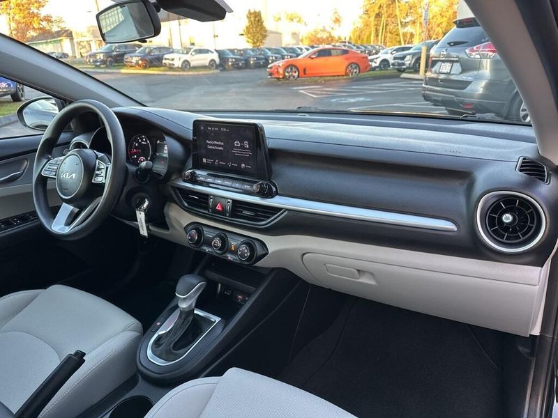 2023 Kia Forte LXS delivers a winning combination of sporty design, fuel-efficient performance, and advanced technology in a compact sedan thats both stylish and practical. Finished in Aurora Black with a Gray interior, this one-owner vehicle showcases Kias commitment to quality craftsmanship and modern innovation. The Forte LXS stands out with its sleek body lines, chrome-accented grille, and LED turn signal indicators integrated into heated power side mirrors, creating a confident and refined appearance that commands attention from every angle.