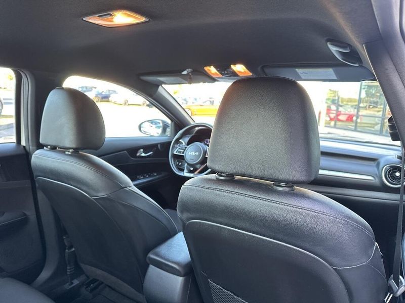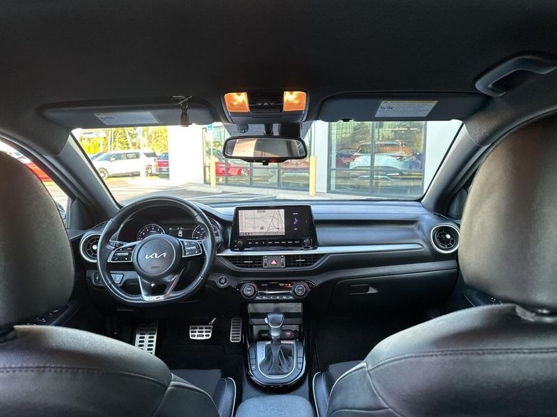 The exterior design of the Forte GT-Line commands attention from every angle. Distinctive GT-Line 17-inch alloy wheels, LED fog lights, LED daytime running lights, and LED taillights showcase its bold character, while the rear spoiler, side sills, and heated mirrors with integrated LED turn signals emphasize its performance flair. Auto On/Off projector headlamps add both function and style. A cargo tray completes the package, making this Forte as practical as it is eye-catching.
