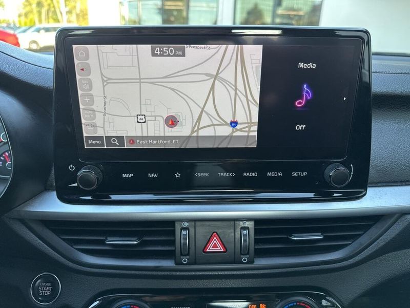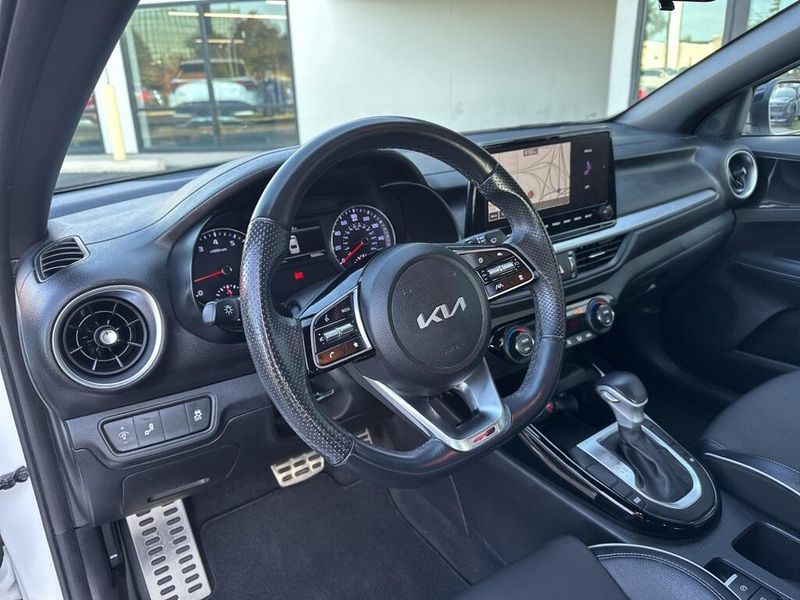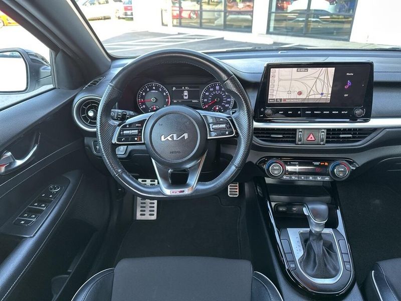 Inside, the 2024 Forte GT-Line surrounds you with smart comfort and connectivity. A 10.25-inch touchscreen with built-in navigation and Kia Connect offers real-time updates, voice commands, and a 12-month connected-services trial. Dual automatic climate control with auto-defogger ensures comfort in every season, while the Smart Key with Push-Button Start and Remote Start features make getting on the road seamless. The GT-Lines sport-inspired interior includes GT-Line Sport Cloth and SynTex seating, a leather-wrapped steering wheel with integrated audio, Bluetooth, and cruise controls, plus a 4.2-inch digital instrument display for a modern driver-focused feel. Rear Occupant Alert, multiple USB ports, and a spacious 60/40 split-folding rear seat maximize utility for both passengers and gear.