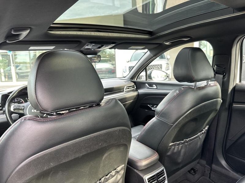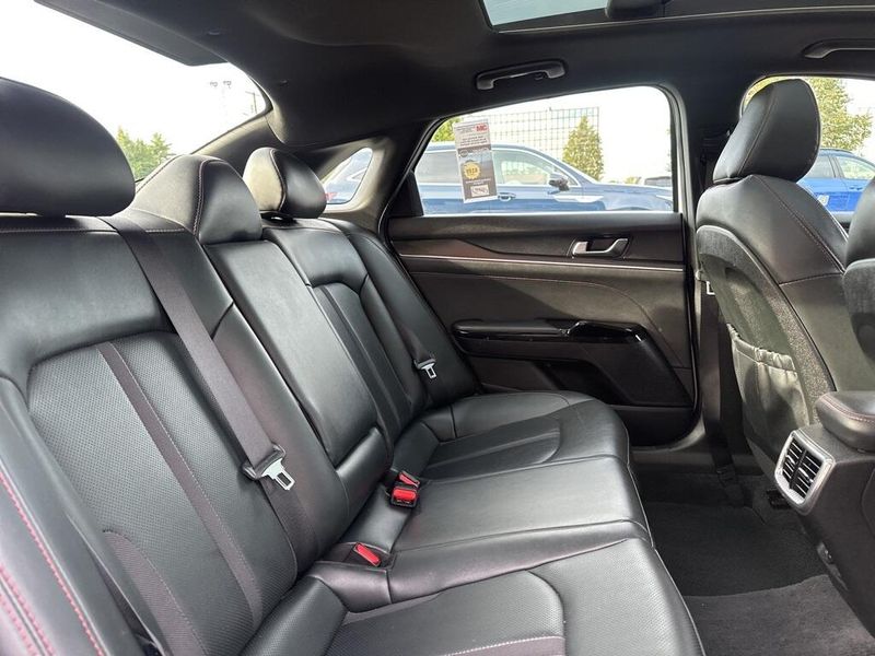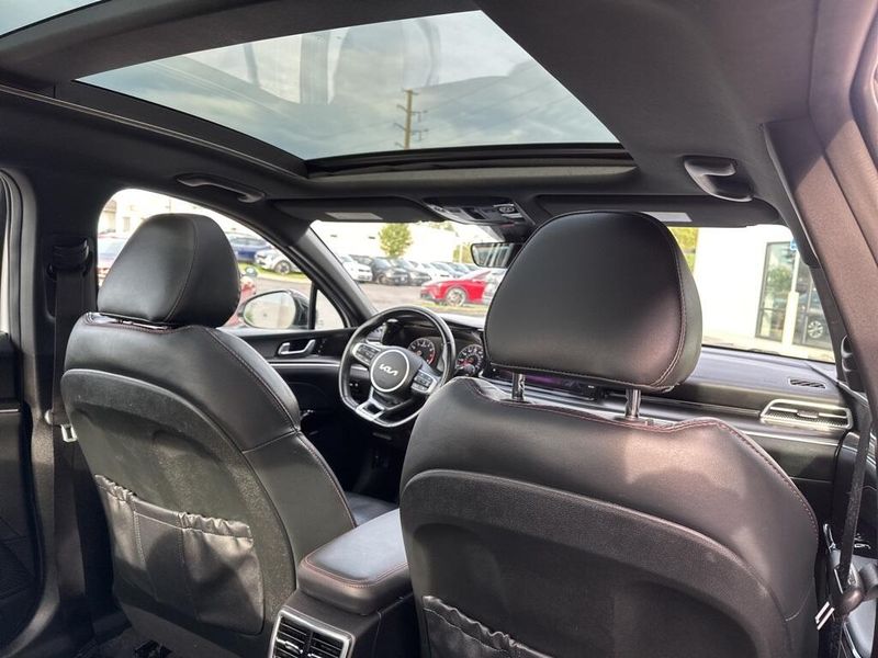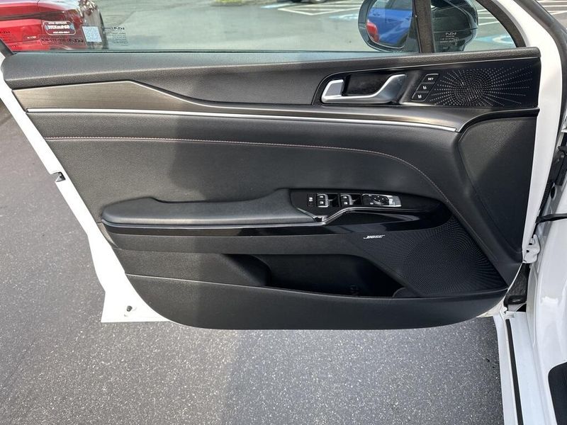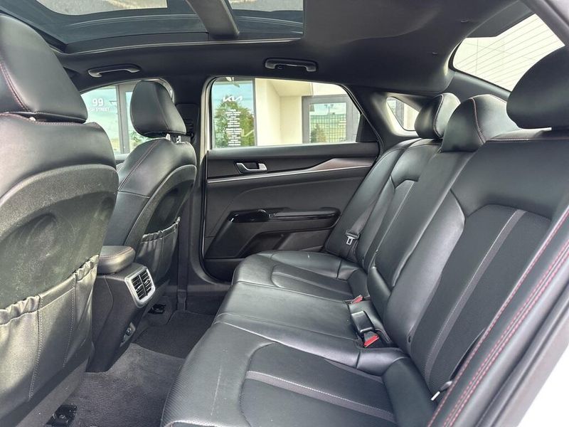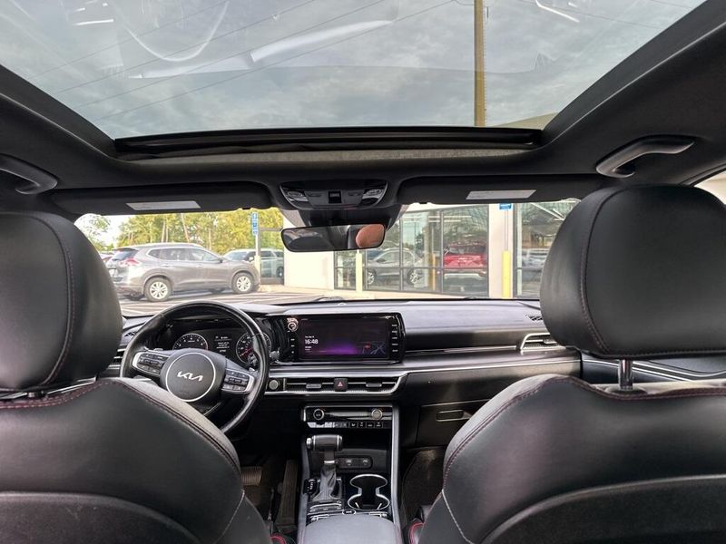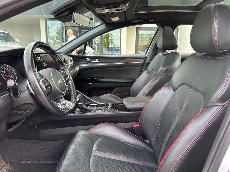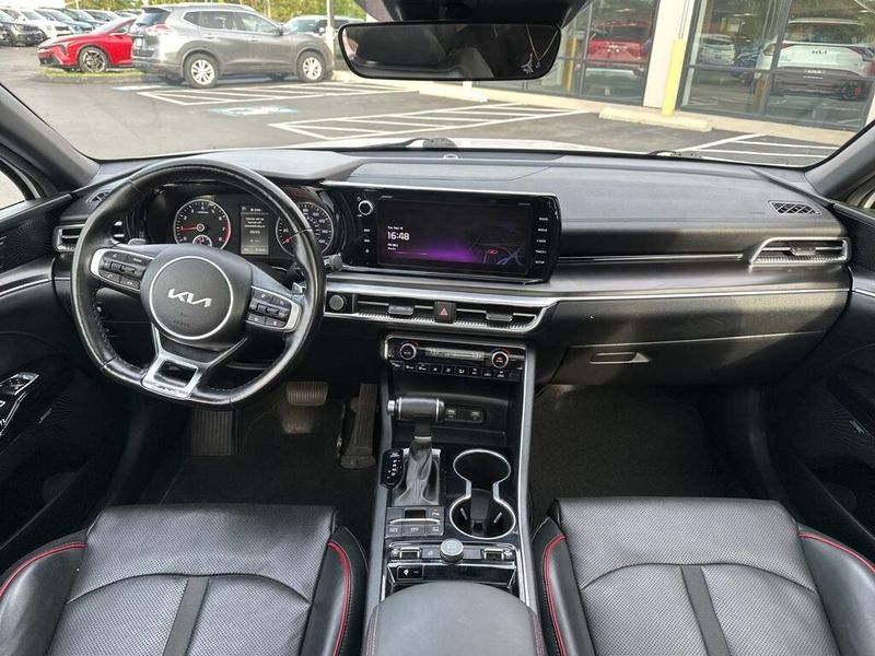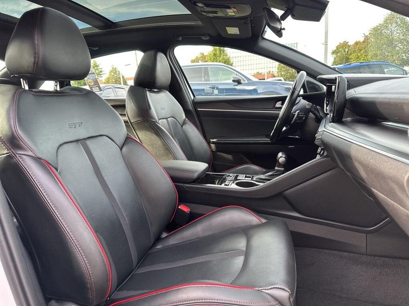 This particular 2023 Kia K5 GT FWD stands out not only for its desirable exterior color and interior finish but also for its premium GT1 Package, which adds luxury and safety upgrades that make it one of the most well-equipped sedans in its class. From its distinctive quad-tip exhaust to its panoramic sunroof, every element of this K5 GT is designed to deliver an elevated experience.
