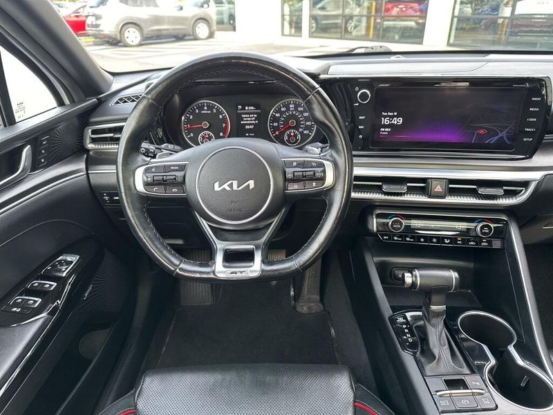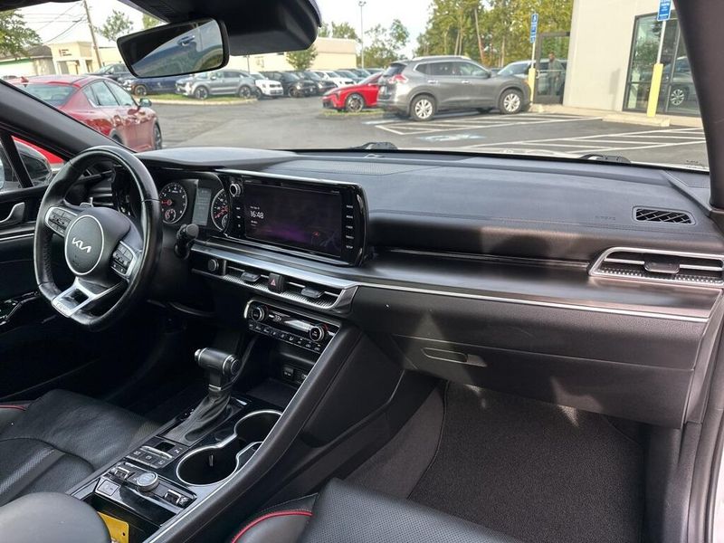 Overall, the 2023 Kia K5 GT FWD delivers an exhilarating driving experience wrapped in sophisticated styling and loaded with advanced technology. With its Glacial White Pearl exterior, turbocharged engine, premium GT1 Package, and bold GT design, this K5 is built for drivers who want performance without compromise. We are a Dobbs Automotive Company with over 100 years of experience. Kia of East Hartford is the source for all makes and models.