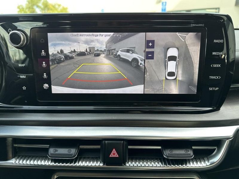 Technology is a major highlight, with a 10.25-inch touchscreen featuring navigation, Apple CarPlay, Android Auto, and SiriusXM radio. Kia Connect services add modern convenience with remote start, remote climate, and safety features accessible through your smartphone. Surround View Monitor, highway driving assist, and parking distance warning provide added confidence in daily driving and urban settings.