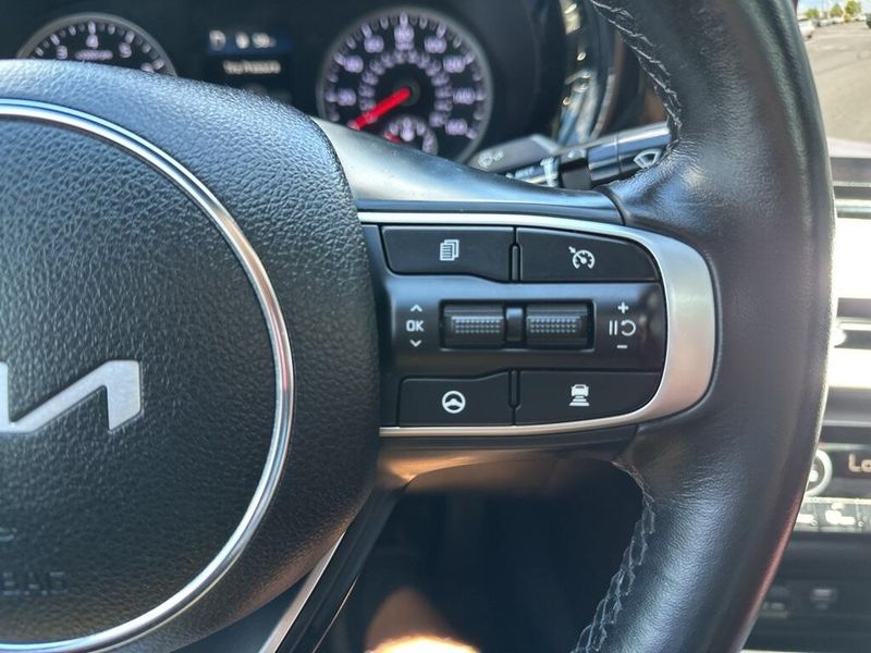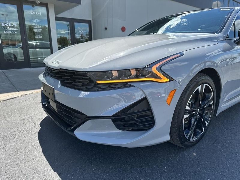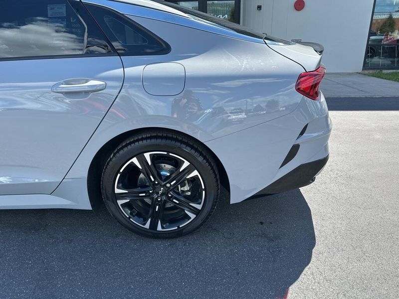 2023 Kia K5 GT-Line delivers a striking balance of athletic design, advanced technology, and confident performance, making it one of the most desirable midsize sedans on the market. Dressed in Wolf Gray with a sleek black interior, this all-wheel drive sport sedan offers an upscale presence with standout styling cues, impressive handling, and comfort features that elevate every drive.