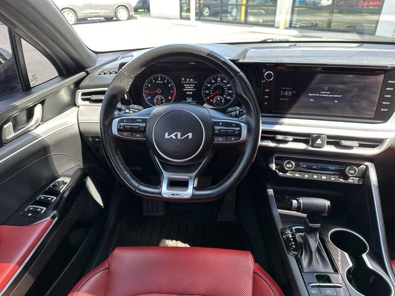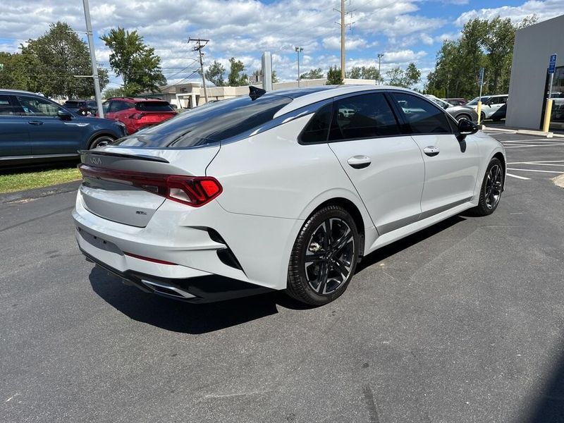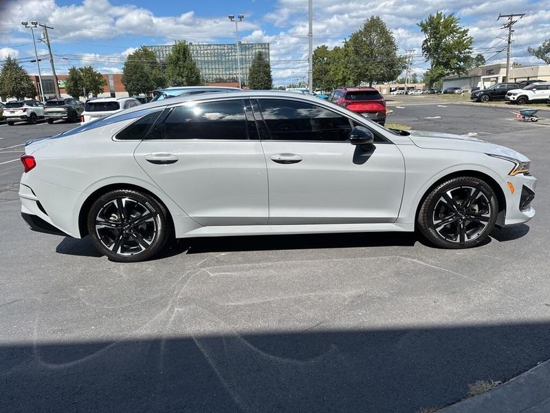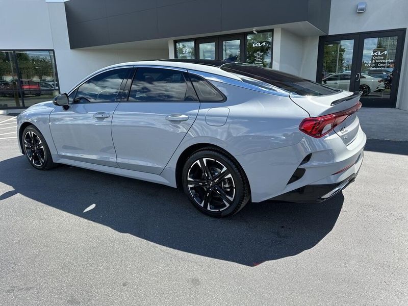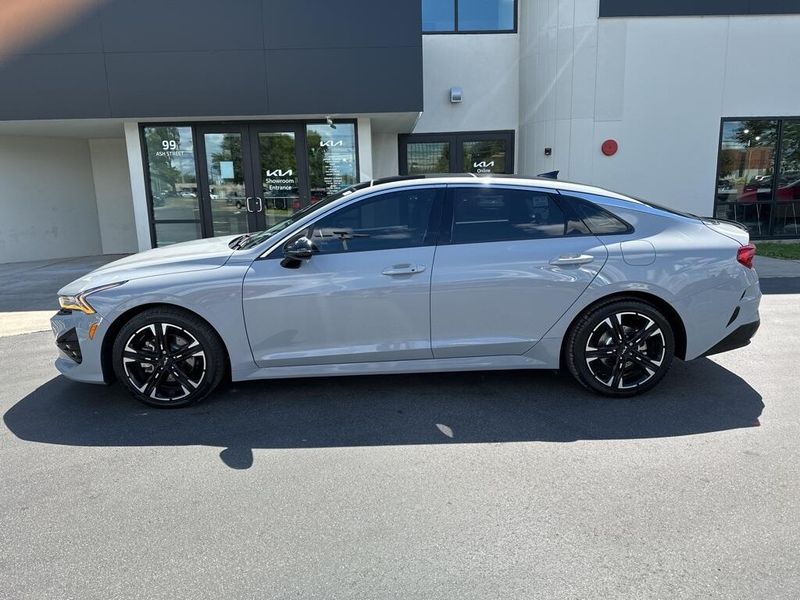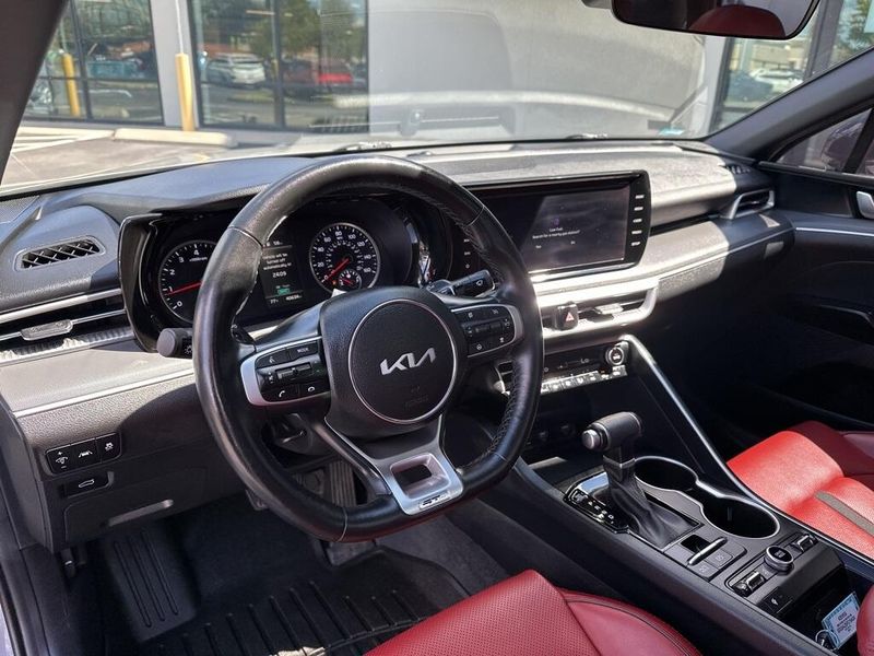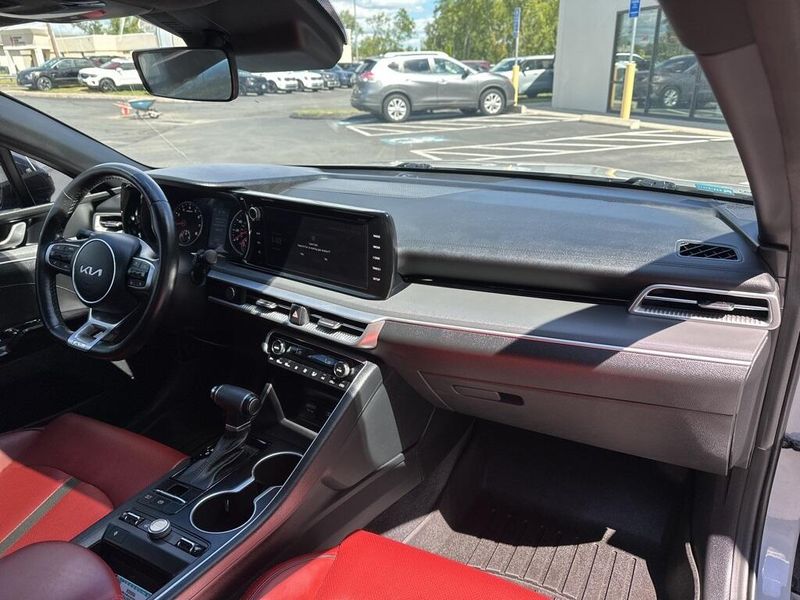 The 2023 Kia K5 GT-Line AWD is a complete package for those seeking a sleek, performance-oriented sedan with modern safety technology, exceptional comfort, and stylish design. Its one-owner status, desirable Wolf Gray finish, red interior package, and premium add-ons make it a standout choice for drivers looking for a sedan that feels both sporty and refined. We are a Dobbs Automotive Company with over 100 years of experience. Kia of East Hartford is the source for all makes and models. www.kiaeast.com