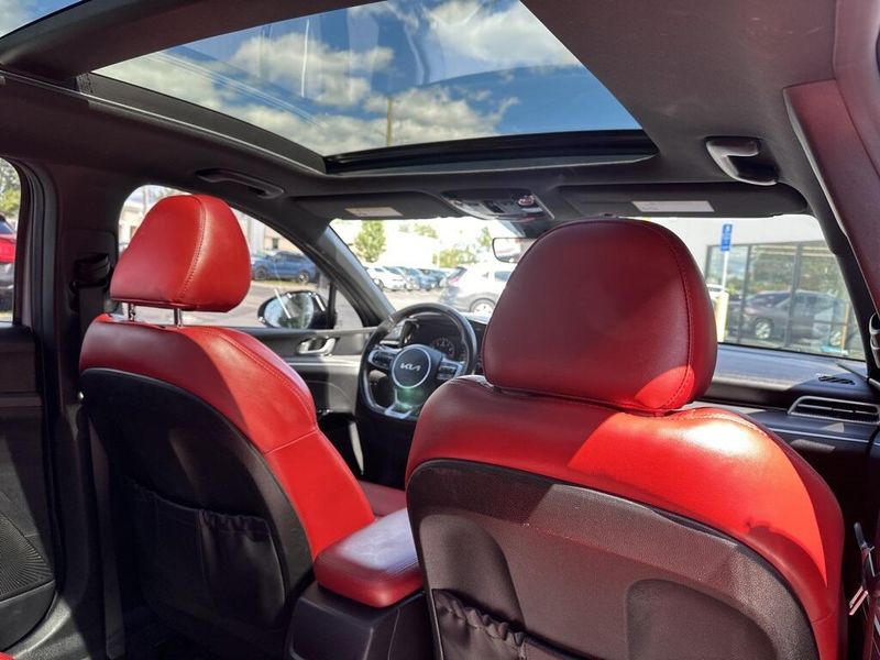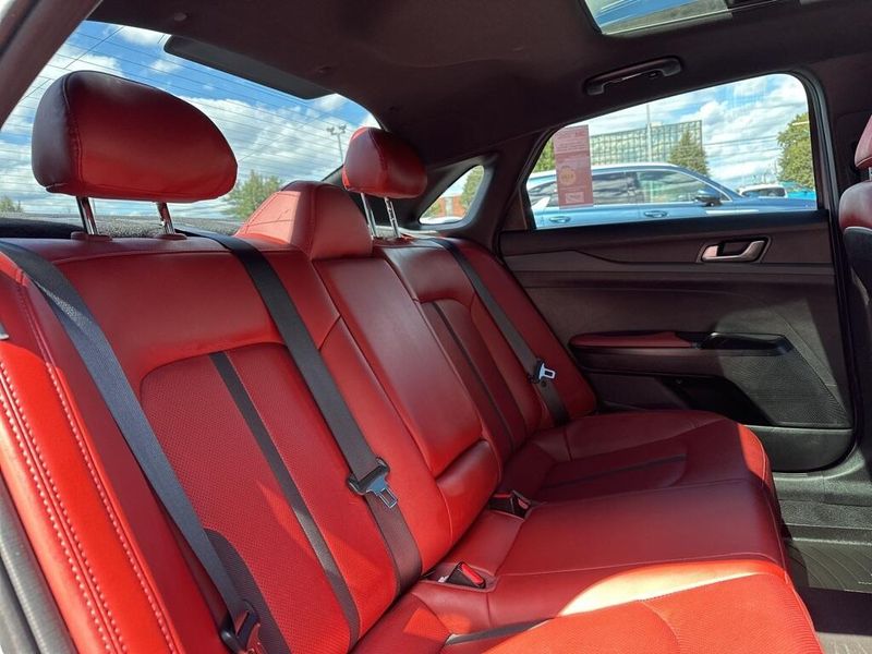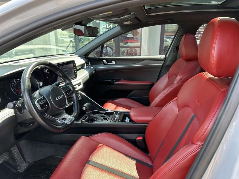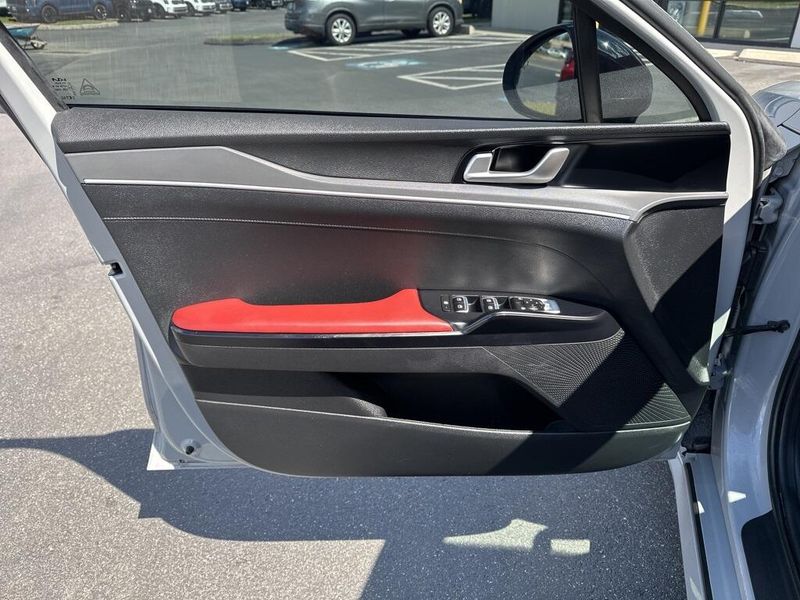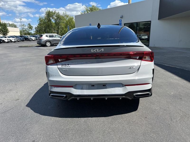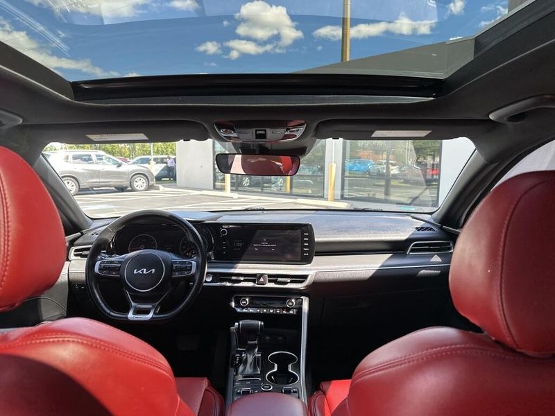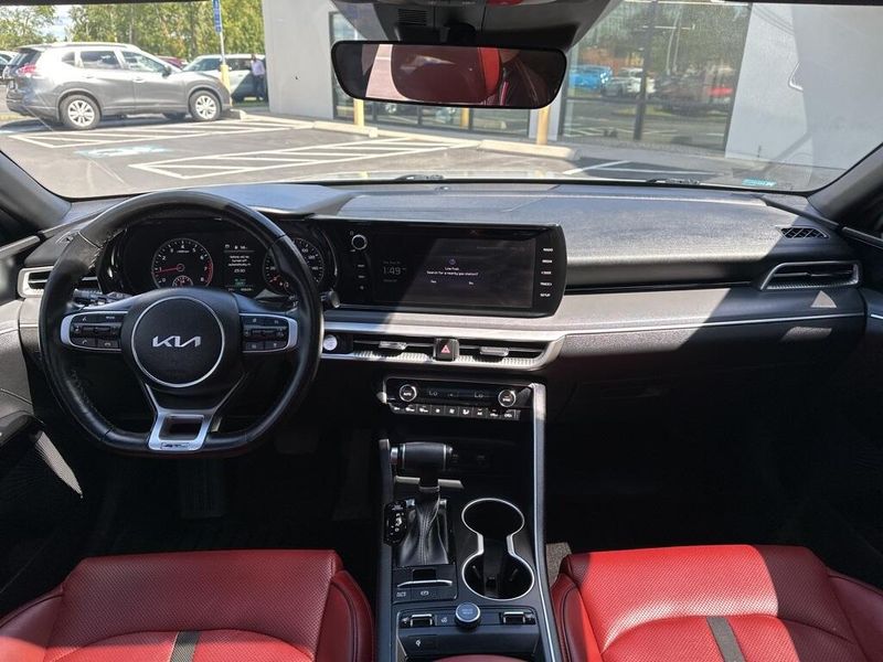The 2023 Kia K5 GT-Line AWD is a complete package for those seeking a sleek, performance-oriented sedan with modern safety technology, exceptional comfort, and stylish design. Its one-owner status, desirable Wolf Gray finish, red interior package, and premium add-ons make it a standout choice for drivers looking for a sedan that feels both sporty and refined. We are a Dobbs Automotive Company with over 100 years of experience. Kia of East Hartford is the source for all makes and models. www.kiaeast.com
