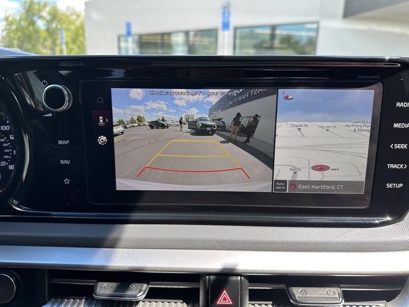 Under the hood, the K5 GT-Line features a 1.6L Turbo GDI CVVD 4-cylinder engine paired with an automatic full-time all-wheel drive system, ensuring confidence in all weather conditions while still delivering up to 33 MPG on the highway. Performance is enhanced with a multi-link rear suspension, gas-pressurized shock absorbers, and electric power-assist steering, creating a responsive and composed ride. Safety is paramount with advanced driver-assistance technology, including Forward Collision-Avoidance Assist, Blind Spot Collision Warning, Lane Keeping Assist, Rear Cross-Traffic Collision Avoidance, Driver Attention Warning, and Smart Cruise Control with Stop & Go.