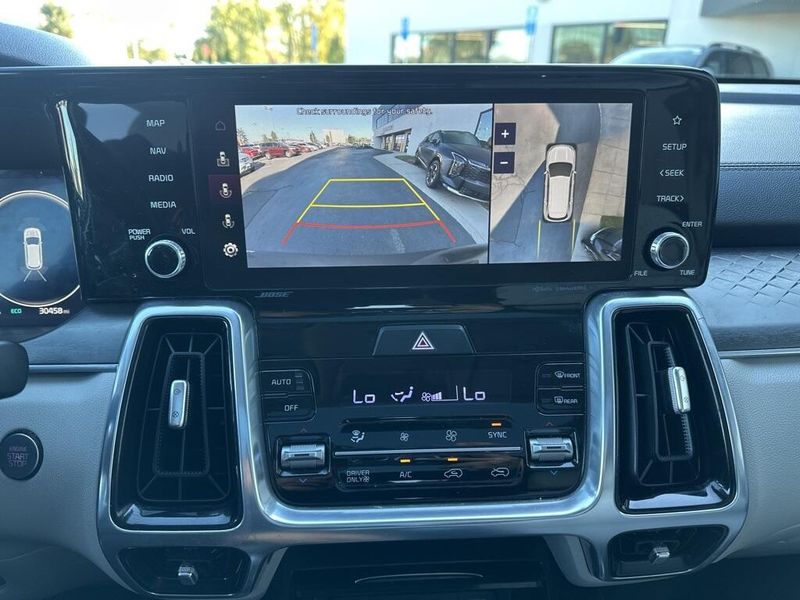 Safety is at the forefront with an impressive array of advanced driver-assistance features. The Sorento SX Prestige comes equipped with Highway Driving Assist, Forward Collision-Avoidance Assist with pedestrian and cyclist detection, Blind-Spot Collision-Avoidance Assist with parallel exit functionality, Rear Cross-Traffic Collision Avoidance, Driver Monitoring-Alert, and Parking Distance Warning with sensors for both front and rear. A Surround View Monitor with front, side, and rear cameras provides a 360-degree perspective, while additional protection comes from multiple airbags, Collision Mitigation systems, and tire pressure monitoring.