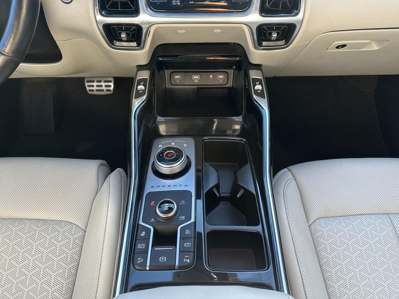 Under the hood, the Sorento PHEV is powered by a 1.6-liter turbocharged GDI engine paired with a hybrid electric motor and a 14 kWh lithium polymer battery. This advanced powertrain is mated to a 6-speed automatic transmission with paddle shifters and drive mode select, offering customizable performance across Comfort, Sport, Eco, Smart, and Snow modes. With full-time all-wheel drive and regenerative 4-wheel disc brakes, the Sorento provides confident traction and efficient performance. Charging is convenient, requiring only 3.4 hours at 220/240V, and the plug-in system ensures reduced fuel use while maintaining versatility for longer trips.