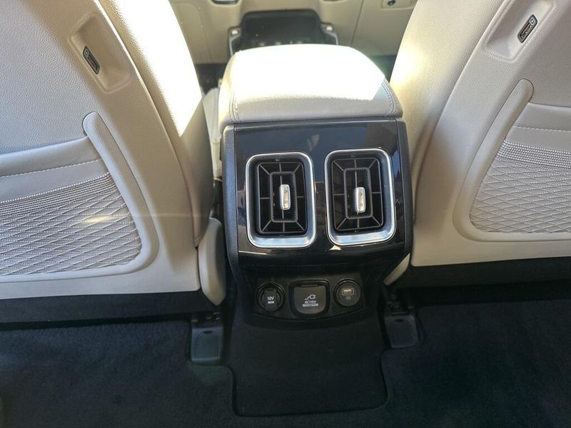 Inside, the Sorento Plug-In Hybrid SX Prestige offers a luxurious and technology-rich cabin. Genuine perforated leather-trimmed seating, heated leather steering wheel, and 10-way power drivers seat with memory settings provide comfort and convenience. Second-row seating offers easy access to a third-row 50/50 split bench that folds flat for expanded cargo space. Premium amenities include dual-zone climate control, a HomeLink garage door transmitter, adaptive cruise control with traffic stop-and-go, and advanced storage solutions with multiple USB and 12V outlets plus a 120V AC power outlet.