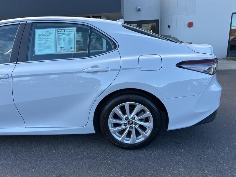 The exterior of the 2024 Camry SE showcases Toyotas attention to aerodynamics and detail. Auto LED headlamps with daytime running lights, LED brakelights, and body-colored bumpers highlight its athletic stance, while chrome window trim, a black grille, and integrated spoiler cues emphasize its sport character. Variable-speed wipers, power side mirrors, and light-tinted glass add function to the clean design. Every element works together to create a modern sedan that feels dynamic and refined from every angle.