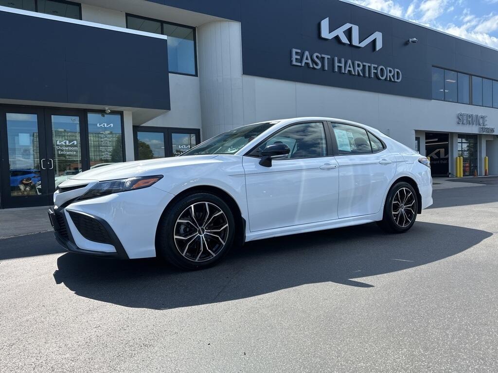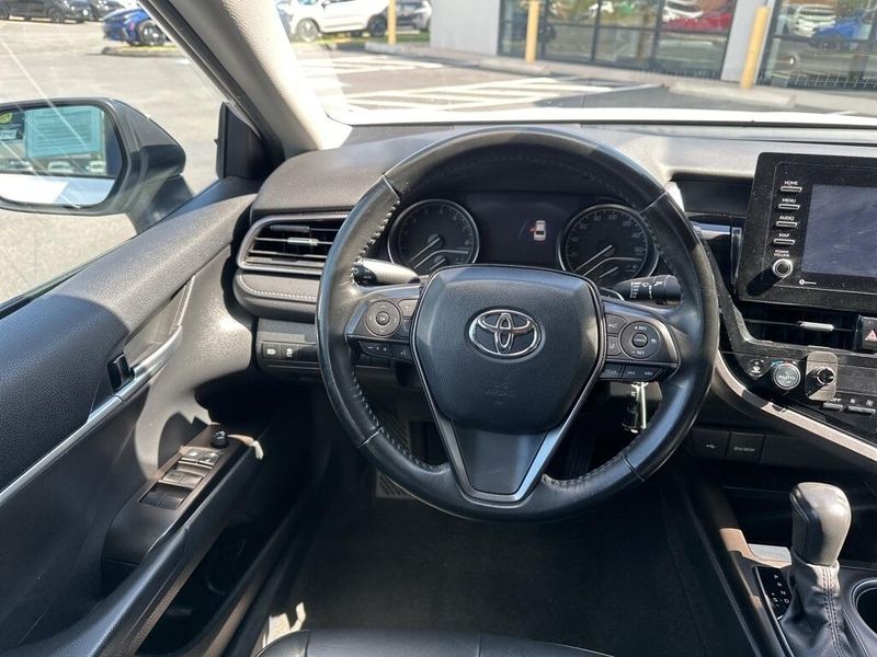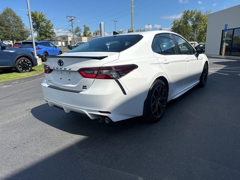2023 Toyota Camry SE Nightshade AWD combines sporty styling, advanced technology, and reliable performance in one of the most popular midsize sedans on the road. Finished in Ice Cap with a striking Black SofTex-trimmed interior, this Camry brings a bold and athletic design together with everyday practicality and comfort. With Toyotas reputation for quality and longevity, the Camry SE Nightshade stands out as a stylish and dependable choice for drivers who want both flair and functionality in their daily drive.