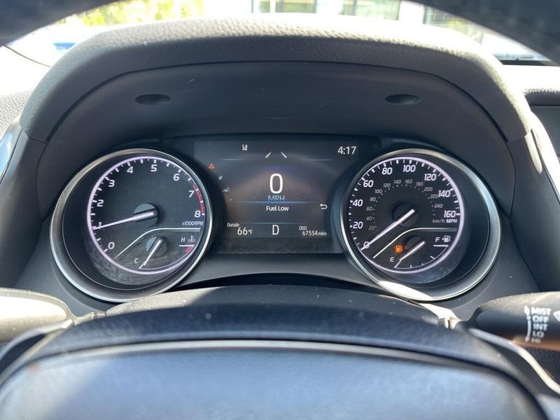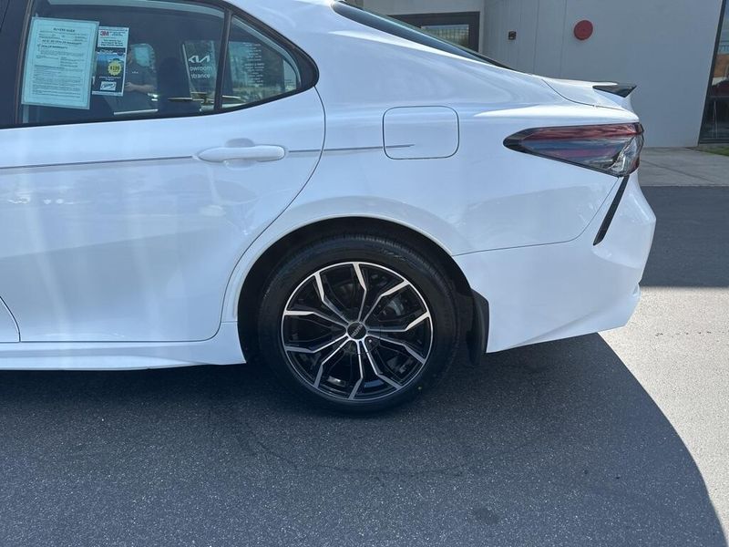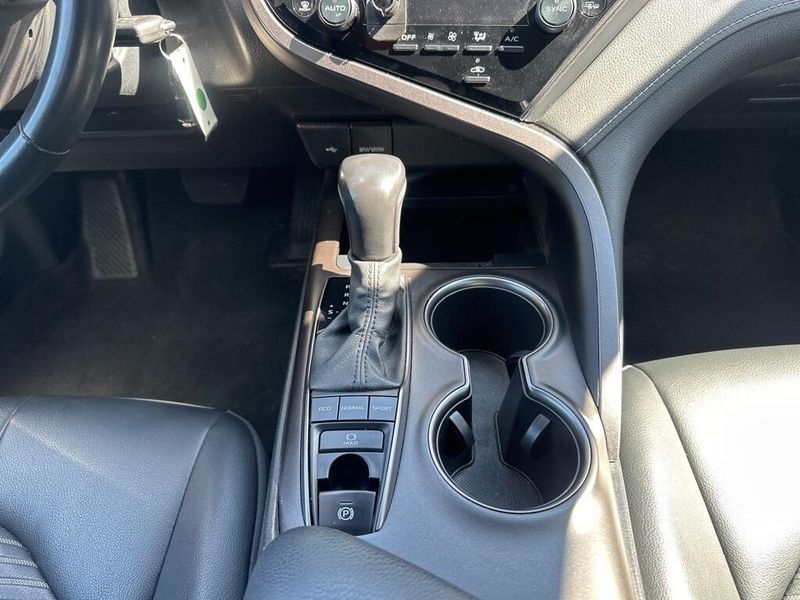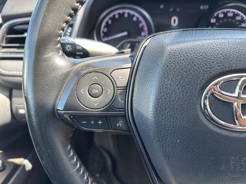 Powering the 2023 Camry SE Nightshade AWD is a 2.5L 4-cylinder DOHC engine with VVT-i paired with an 8-speed Direct Shift ECT-i automatic transmission and paddle shifters. Its sport-tuned suspension, front and rear anti-roll bars, and gas-pressurized shock absorbers give it sharp road manners, while selectable driving modes balance efficiency with spirited driving. With up to 25 MPG in the city and 34 MPG on the highway, the Camry SE AWD blends fuel efficiency with confident performance, making it ideal for commuters and long-distance travelers alike.
