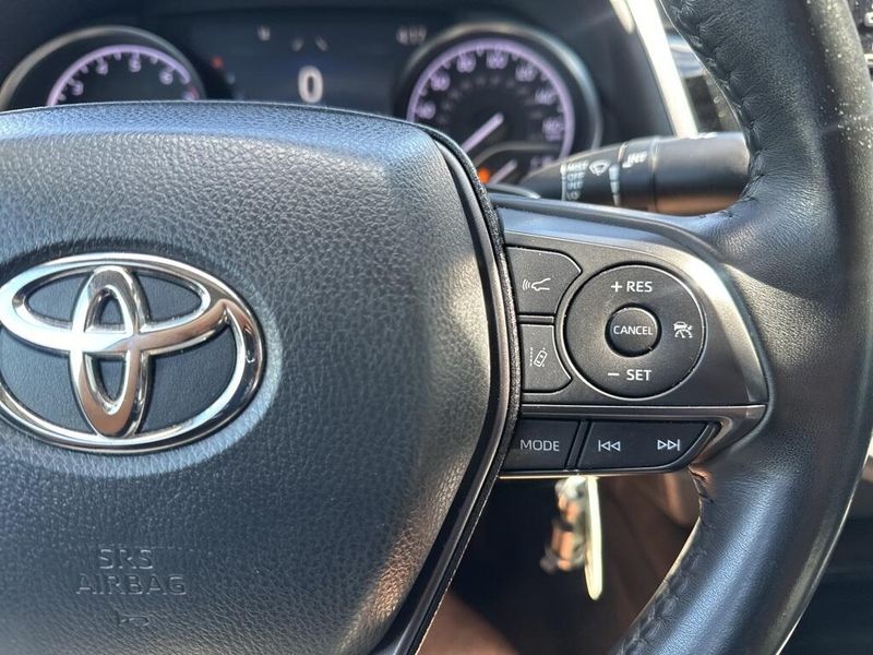 Toyota Safety Sense 2.5+ comes standard, providing driver-assist technology such as Lane Tracing Assist, Collision Mitigation with pedestrian detection, Evasion Assist, and Dynamic Radar Cruise Control. Additional safety highlights include Blind Spot Monitoring with Lane Change Assist, a backup camera, advanced airbag system, and a Tire Pressure Monitoring System. With NHTSAs 5-Star Government Safety Ratings as its benchmark, the Camry is engineered to prioritize driver and passenger security at every turn.