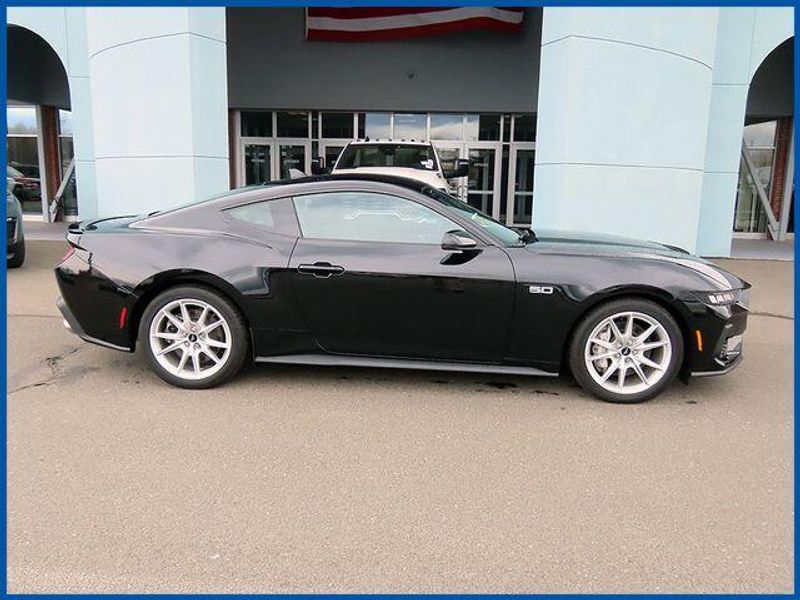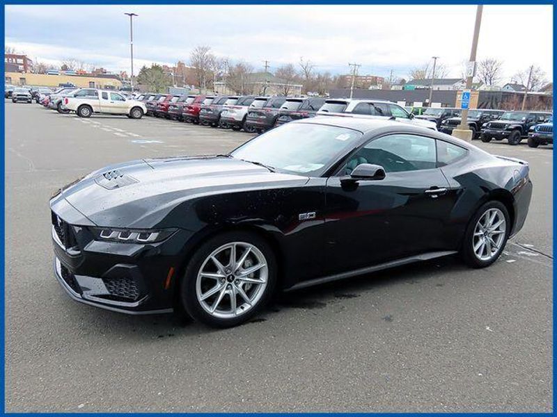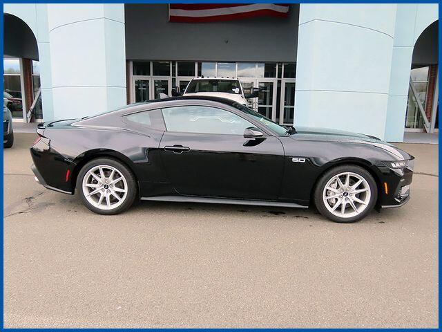 CARFAX One-Owner. Clean CARFAX. Shadow Black 2024 Ford Mustang GT Premium RWD 10-Speed Automatic 5.0L V8 Ti-VCT 5.0L V8 Ti-VCT, RWD, Shadow Black, Black Onyx Leather, Active Anti-Theft System, Alloy wheels, B&O Sound System by Bang & Olufsen, Connected Built-In Navigation, Equipment Group 401A High Package, Ford Co-Pilot360 Assist+, Illuminated Door-Sill Scuff Plates, Integrated Turn Signals, Leather-Trimmed Bucket Seats w/Color Accents, Locking Center Console, Memory Driver Seat & Mirrors, Pre-Collision Assist w/Automatic Emergency Braking, Security Package, Wheel Locking Kit.