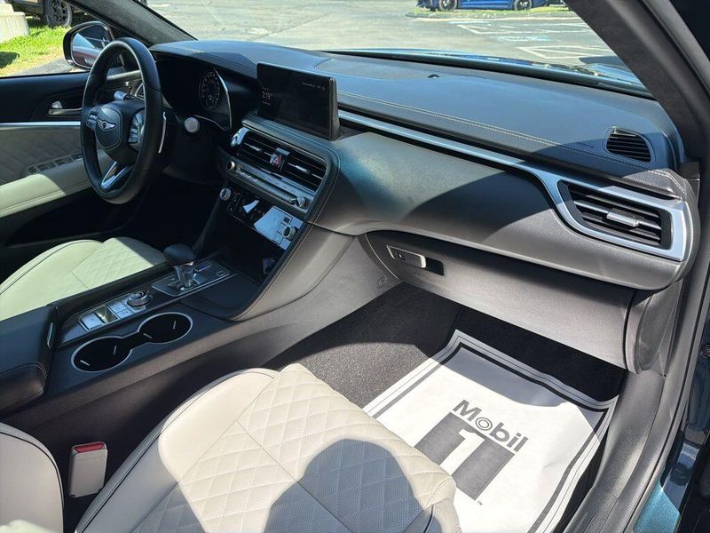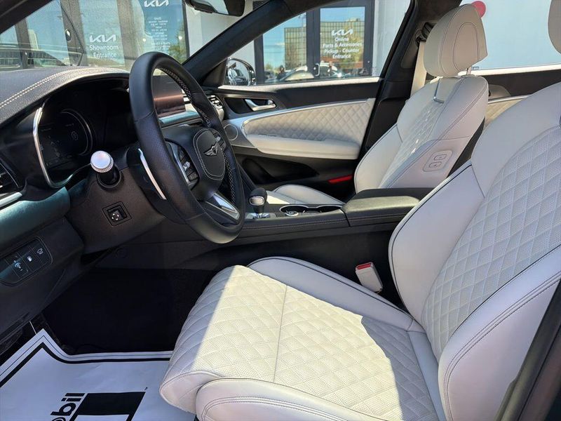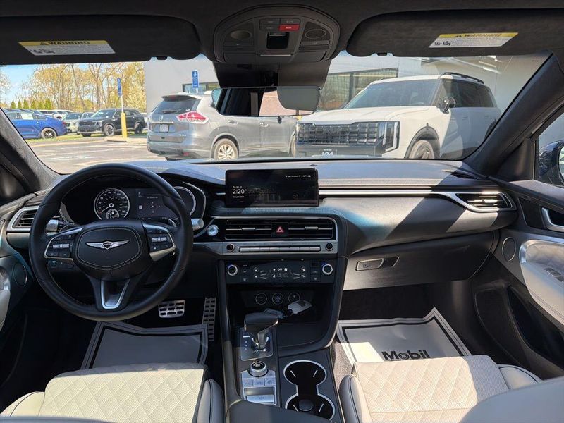 Beneath the sculpted exterior lies a potent 3.3L V6 DGI DOHC 24V engine, mated to an 8-Speed Automatic transmission and all-wheel drive for exhilarating acceleration and confident handling. With an impressive 17 city / 26 highway MPG, this Genesis G70 delivers an exceptional balance of power and efficiency.