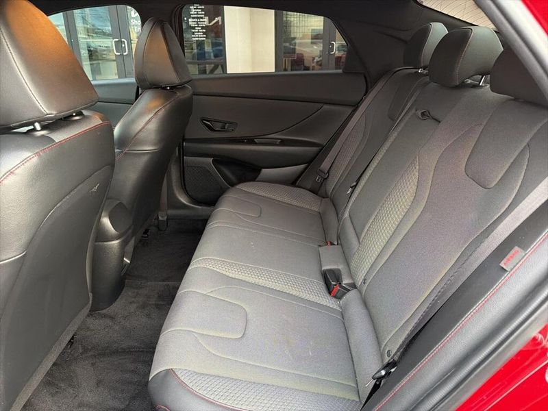 2024 Hyundai Elantra N Line delivers an exciting blend of performance, style, and cutting-edge technology, presented here in the striking Ultimate Red exterior with a refined Black interior. Designed for drivers seeking a sport-tuned sedan with everyday comfort, the Elantra N Line offers dynamic turbocharged power, sharp handling, and a bold design that sets it apart from traditional compact sedans. Its aggressive stance, premium cabin materials, and advanced driver-assistance systems make it a compelling choice for those who want excitement without sacrificing practicality.