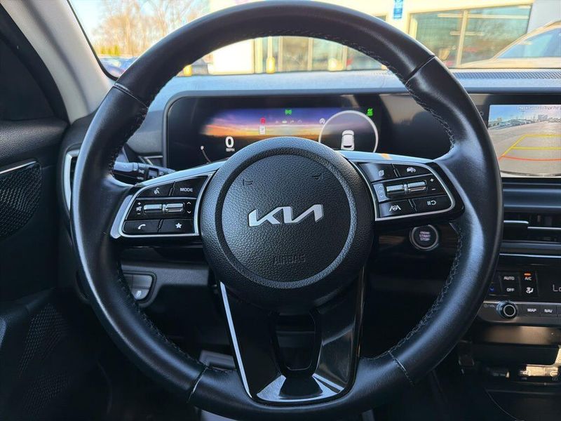 Key features of the 2024 Kia Seltos S AWD include a comprehensive suite of safety technologies such as Forward Collision-Avoidance Assist, Blind-Spot Collision-Avoidance Assist, Rear Cross-Traffic Collision Avoidance, and a full array of airbags including front, side, and curtain protection. The vehicle also includes driver monitoring alerts and collision mitigation systems designed to enhance driver awareness and overall safety. Inside, the Seltos offers a refined and functional cabin with heated front seats, premium cloth and Sofino leatherette seat trim, a leather-wrapped steering wheel, and automatic climate control. The advanced 10.25-inch touchscreen navigation system with Apple CarPlay, Android Auto, Bluetooth connectivity, and voice recognition provides seamless integration for modern connectivity needs.