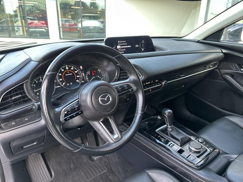 Mazda places a strong emphasis on safety, equipping this CX-30 with Smart Brake Support, Blind Spot Monitoring, Rear Cross Traffic Alert, Lane Keeping technology, and Driver Monitoring-Alert for added protection. A full suite of airbags, Collision Mitigation technology, and a rearview camera further reinforce its commitment to safety.