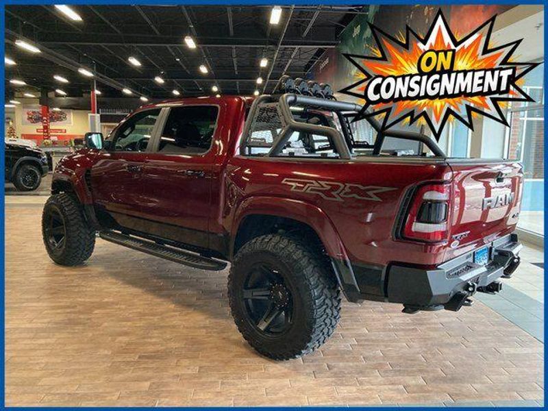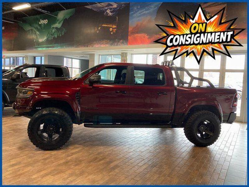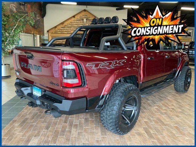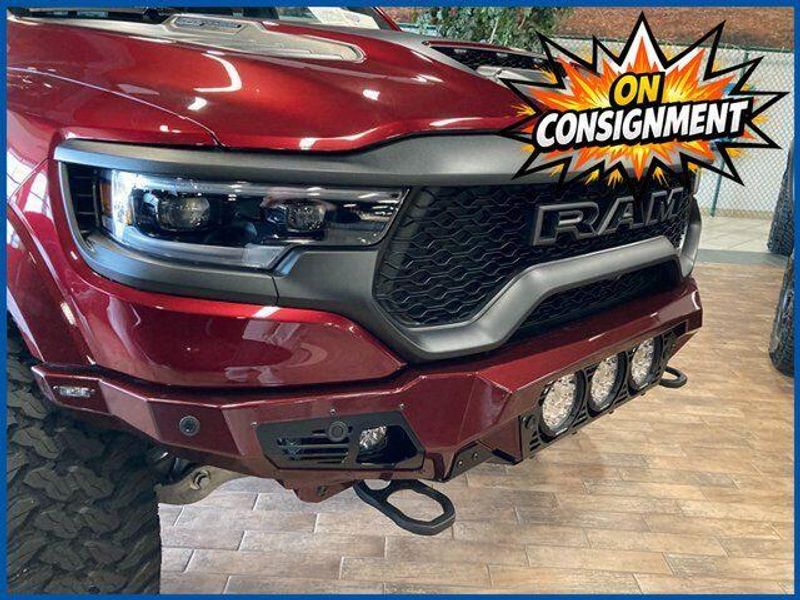On Consignment. All custom work was completed by Xtreme Rides in New Britain, Connecticut and includes a suspension lift and leveling kit, wheel spacers for proper stance and clearance, black RAM 1500 TRX wheels, Addictive Desert Designs components including a Stealth Fighter rear bumper, Armadillo bed rack, RetraxPRO XR bed cover for a 5.7-ft bed with Rambox, AUXBEAM and Morimoto fog lights with custom wiring, Borla exhaust components with 3-inch connecting pipes, AFE cold air intake, custom metal fabrication, and paint-to-match finishing on the front bumper and fender flares.Clean CARFAX. Delmonico Red Pearlcoat 2024 Ram 1500 TRX 4WD 8-Speed Automatic 6.2L Supercharged HEMI V8 SRT 6.2L Supercharged HEMI V8 SRT, 8-Speed Automatic, Delmonico Red Pearlcoat, #2 Seat Foam Cushion, 10 Speakers, 2-Door Passive Entry, Front Door Locks, 4 Way Front Headrests, 6.2L Supercharged V8 Final Edition, Accent Color Door Handles, Adaptive Cruise Control w/Stop & Go, AM/FM radio: SiriusXM with 360L, Blind Spot & Cross Path Detection, Bucket Seats, Digital Rearview Mirror, Driver Seat Memory, Driver/Passenger Wrapped Assist Handles, Exterior Mirrors w/Memory, Front Door Accent Lighting, Front Seat Back Map Pockets, Full Length Premium Upgraded Floor Console, harman/kardon 19 Speaker Premium Sound, Heads-Up Display, Heated Front Seats, Heated Second Row Seats, Heated Steering Wheel, IP LED Ambient Light Pipe, Lane Keep Assist, Leather Trimmed Bucket Seats, Leather/Carbon Flat-Bottom Steering Wheel, Leather/Suede Flat-Bottom Steering Wheel, LED CHMSL Lamp, Luxury Front Door Trim Panel, MOPAR 4 Adjustable Cargo Tie-Down Hooks, MOPAR Bright Pedal Kit, MOPAR Deployable Bed Step, MOPAR Spray In Bedliner, MOPAR TRX Hood Graphics, Navigation System, ParkSense Front/Rear Park Assist w/Stop, Patina Accent Stitching, Pedestrian Emergency Braking, Pick-Up Box Lighting, Power 4-Way Driver Lumbar Adjust, Power 4-Way Passenger Lumbar Adjust, Power 8-Way Driver & Passenger Seats, Power Adjustable Pedals w/Memory, Premium Wrapped IP Bezel, Quick Order Package 29Y TRX, Radio/Driver Seat/Mirrors/Pedals Memory, Rain Sensitive Windshield Wipers, Real Carbon Fiber Interior Accents, Rear 60/40 Folding Seat, Rear 60/40 Folding Split Recline Seat, Rear Door Accent Lighting, Rear Underseat Compartment Storage, Rear Window Defroster, Remote Tailgate Release, Special Edition Console Badge, Special Edition Hood Badge, Sun Visors w/Illuminated Vanity Mirrors, Surround View Camera System, Trailer Brake Control, Trailer Light Check, Trailer Reverse Steering Control, Trailer Tire Pressure Monitoring System, TRX Level 2 Equipment Group, TRX Special Edition Side Graphics, Universal Garage Door Opener, Ventilated Front Seats, Ventilated Rear Seats, Wheels: 18'' x 9'' Bead Lock Aluminum, Wireless Charging Pad.