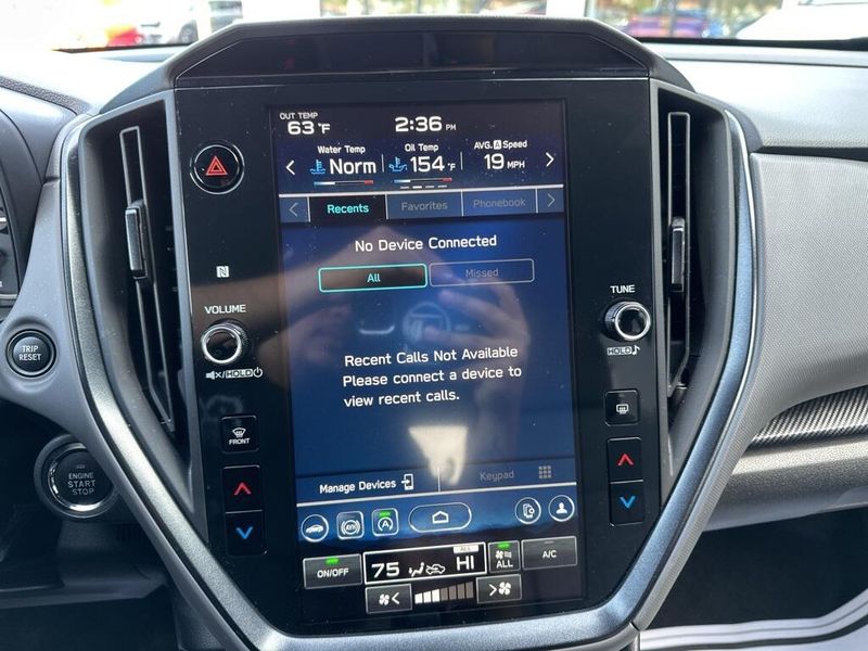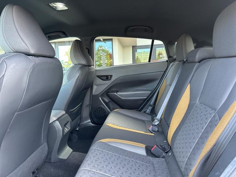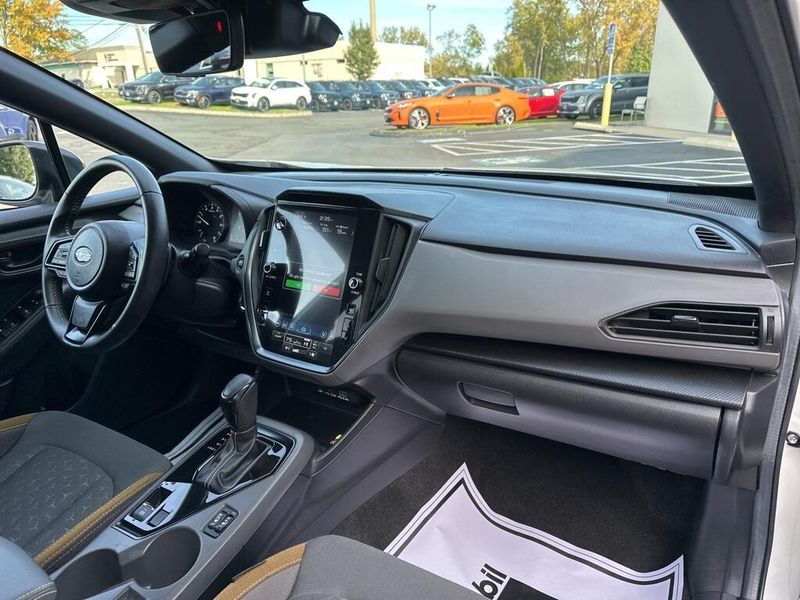 Inside, the Crosstrek Sport features a cabin designed around driver comfort and modern functionality. The Sport Cloth upholstery with yellow contrast stitching gives a refined, sporty feel, while heated front seats, a 6-way adjustable drivers seat, and dual-zone automatic climate control ensure year-round comfort. The centerpiece of the interior is the expansive 11.6-inch STARLINK Multimedia Plus System, offering seamless connectivity through Apple CarPlay, Android Auto, and Bluetooth streaming. Additional amenities include an auto-dimming mirror with Compass and HomeLink, voice-activated controls, and the Subaru STARLINK Safety and Security system with mobile hotspot access for constant connection wherever you travel.
