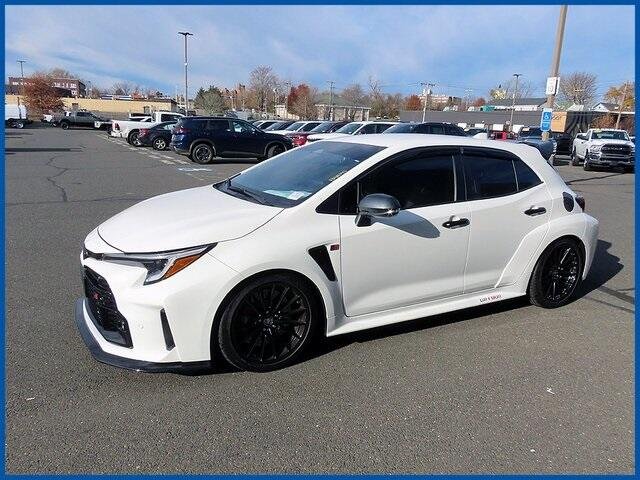 White 2024 Toyota GR Corolla Premium AWD 6-Speed Manual 1.6L I3 PDI Turbocharged DOHC 12V LEV3-ULEV70 300hp GR Corolla Premium, 1.6L I3 PDI Turbocharged DOHC 12V LEV3-ULEV70 300hp, AWD, 8 Speakers, Air Conditioning, AM/FM radio: SiriusXM, Auto High-beam Headlights, Automatic temperature control, Delay-off headlights, Exterior Parking Camera Rear, Four wheel independent suspension, Front fog lights, Fully automatic headlights, Navigation system: Drive Connect Cloud Navigation (1-year trial subscription), Power steering, Power windows, Radio data system, Radio: Toyota Audio Multimedia w/8 JBL Speakers, Rear window defroster, Remote keyless entry, Speed-sensing steering, Steering wheel mounted audio controls, Traction control.