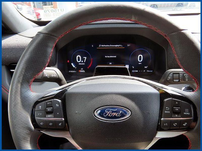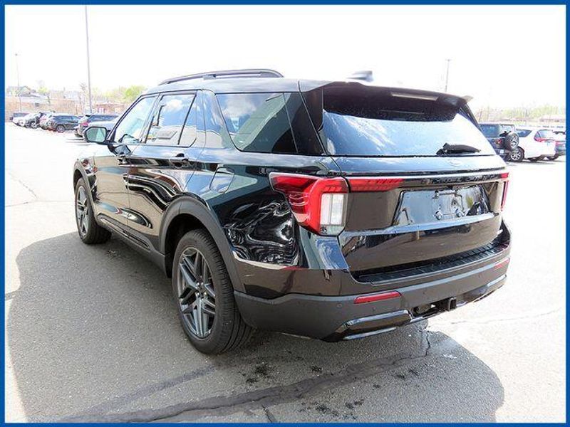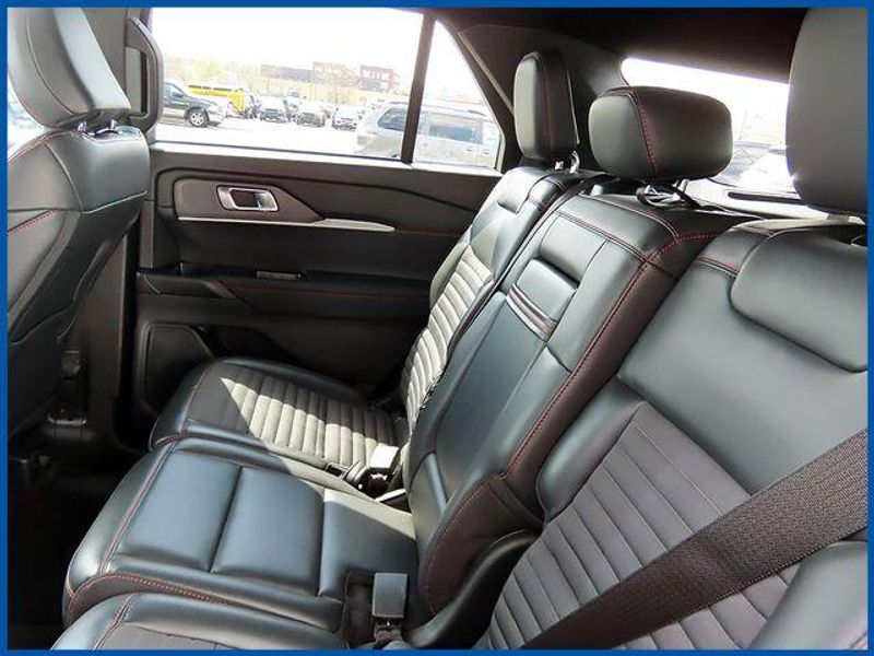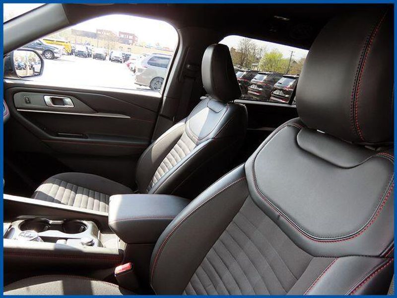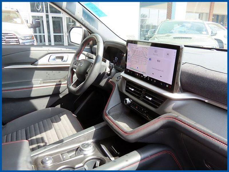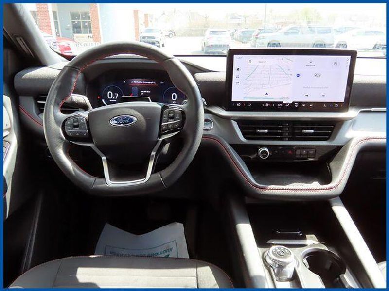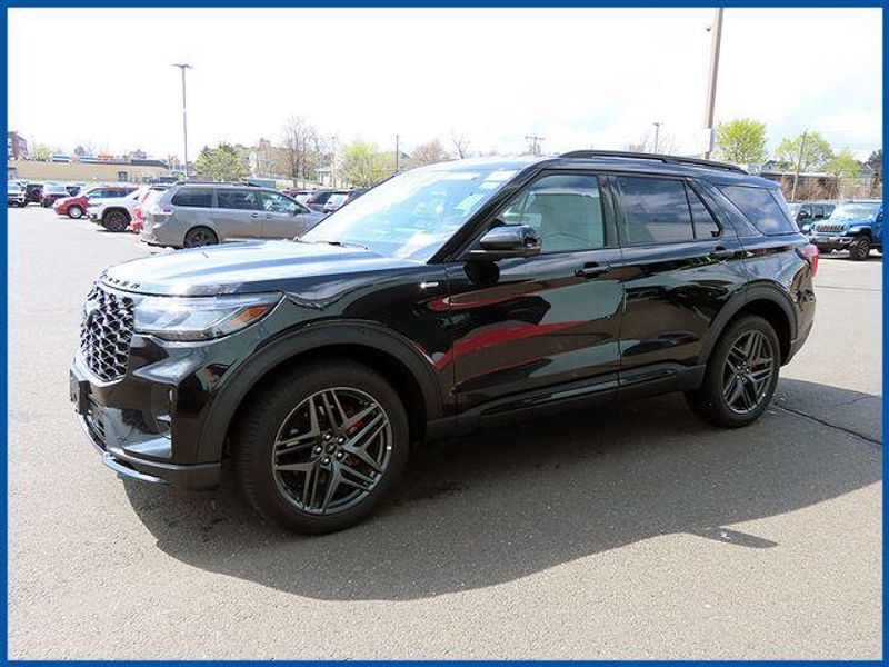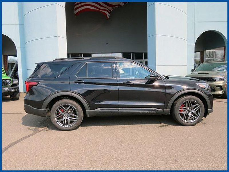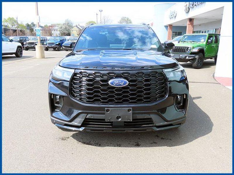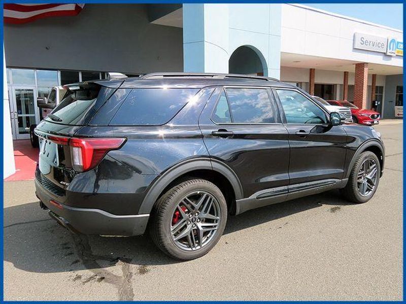 CARFAX One-Owner. Black Metallic 2025 Ford Explorer ST-Line 4WD 10-Speed Automatic 2.3L EcoBoost I-4 Explorer ST-Line, 4D Sport Utility, 4WD, Black Metallic, Onyx Cloth, 10 Speakers, 3rd row seats: bench, Air Conditioning, AM/FM radio: SiriusXM with 360L, Automatic temperature control, Equipment Group 300A Standard Package, Front dual zone A/C, Front reading lights, Garage door transmitter, Heated steering wheel, Navigation System, Performance Brakes, Radio: B&O Sound System by Bang & Olufsen, Rear air conditioning, Red Painted Perf Front & Rear Brake Calipers, ST-Line Street Pack, Wheels: 21'' Magnetite-Painted Aluminum.