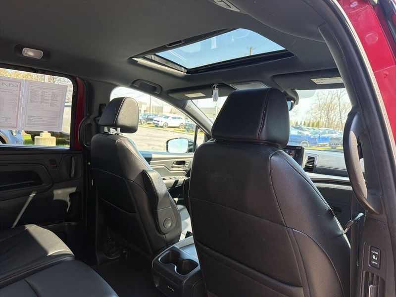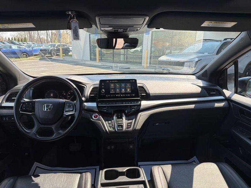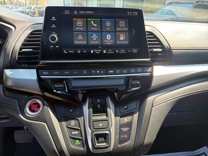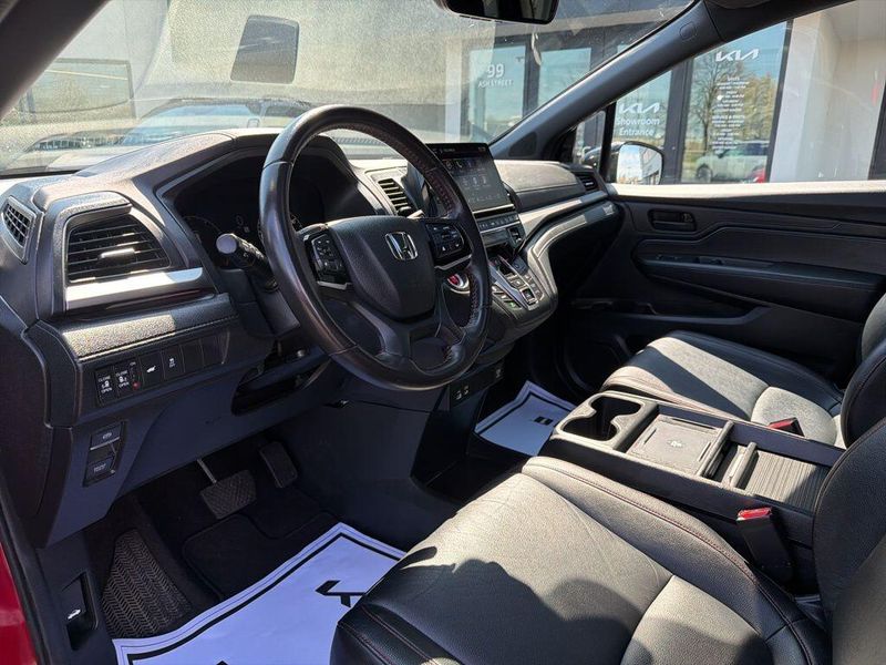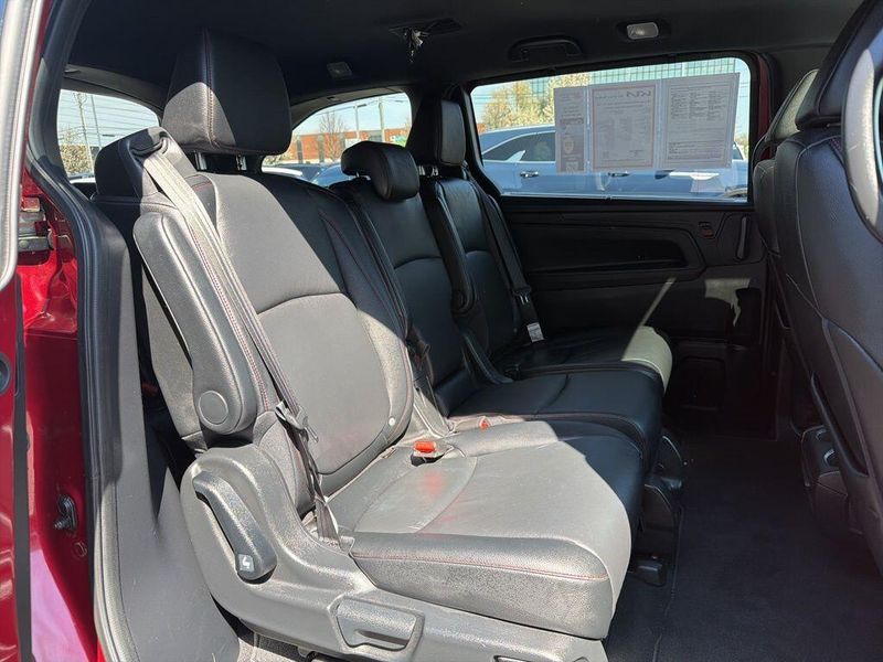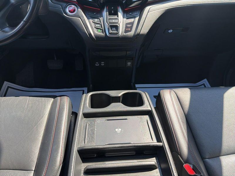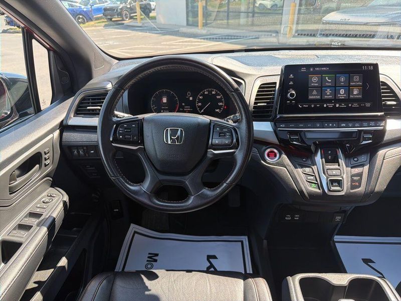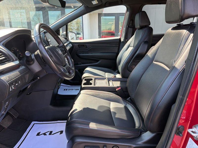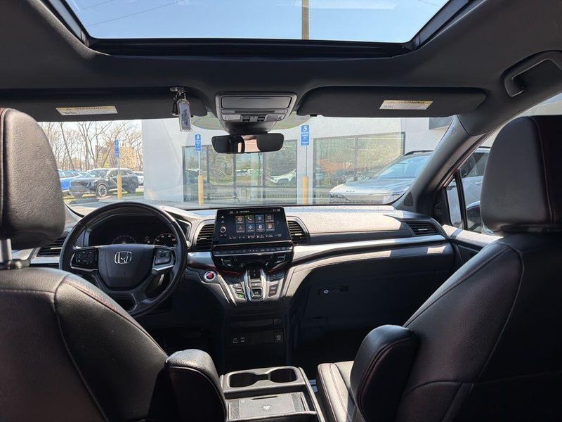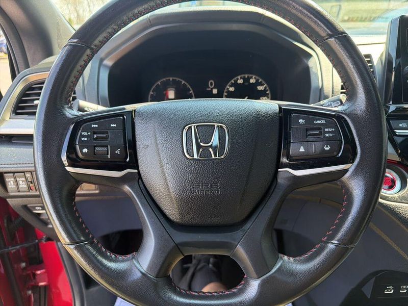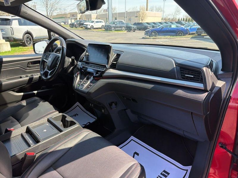 Boasting a striking Red exterior, the Odyssey Sport-L commands attention on the road. Its sleek, aerodynamic design not only enhances its visual appeal but also contributes to impressive fuel efficiency, with an EPA-estimated 19 MPG in the city and 28 MPG on the highway.