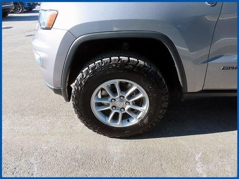 CARFAX One-Owner. Billet Silver Metallic Clearcoat 2018 Jeep Grand Cherokee Laredo E 4WD 8-Speed Automatic 3.6L V6 24V VVT 3.6L V6 24V VVT, 4WD, Billet Silver Metallic Clearcoat, Black Cloth, All Weather Trail Rated Package, Bright Side Roof Rails, Engine Block Heater, Fuel Tank Skid Plate Shield, Heated Front Seats, Heated Steering Wheel, Hill Descent Control, MOPAR Cargo Area Liner, MOPAR Slush Mats, Power 4-Way Driver Lumbar Adjust, Power 8-Way Driver/Manual Passenger Seat, Quick Order Package 2BE Laredo E, Remote Start System, Selec-Terrain System, SiriusXM Satellite Radio, Tow Hooks, Trail Rated Badge.
