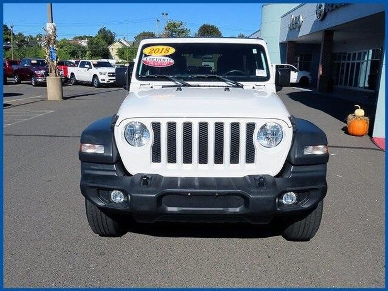 Clean CARFAX. Bright White Clearcoat 2018 Jeep Wrangler Unlimited Sport S 4WD 8-Speed Automatic 3.6L V6 24V VVT **SOFT TOP NOT INCLUDED**, Wrangler Unlimited Sport S, 3.6L V6 24V VVT, 4WD, 1-Yr SiriusXM Radio Service, Air Conditioning, Automatic Headlamps, Cold Weather Group, Convenience Group, Deep Tint Sunscreen Windows, For More Info, Call 800-643-2112, Front 1-Touch Down Power Windows, Heated Front Seats, Heated Steering Wheel, Leather Wrapped Steering Wheel, Power Heated Mirrors, Quick Order Package 24S Sport S, Radio: Uconnect 3 w/5'' Display, Remote Keyless Entry, Security Alarm, SiriusXM Satellite Radio, Speed Sensitive Power Locks, Sun Visors w/Illuminated Vanity Mirrors, Universal Garage Door Opener, Wheels: 17'' x 7.5'' Tech Silver Aluminum.