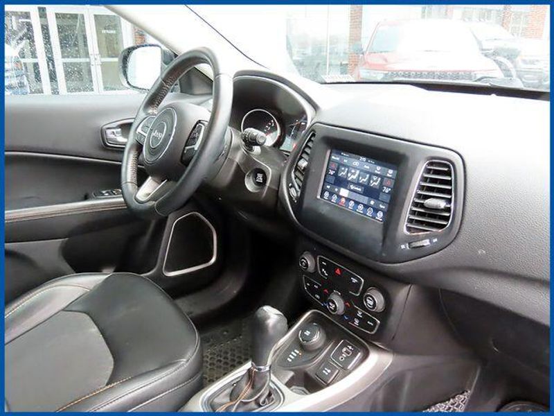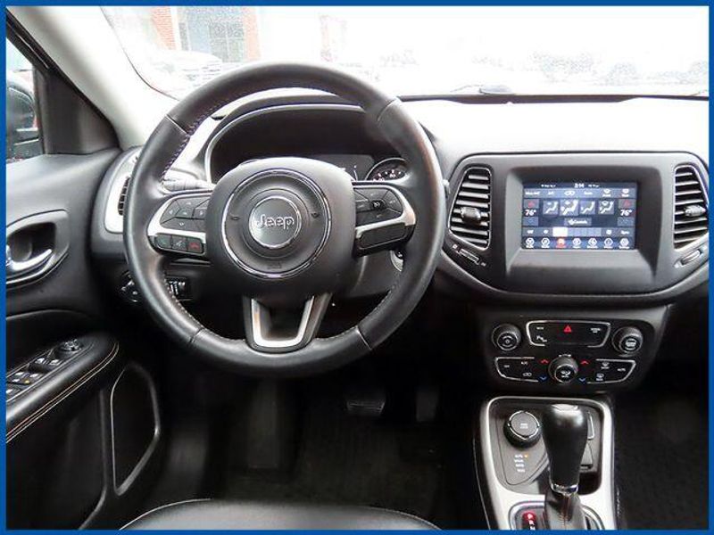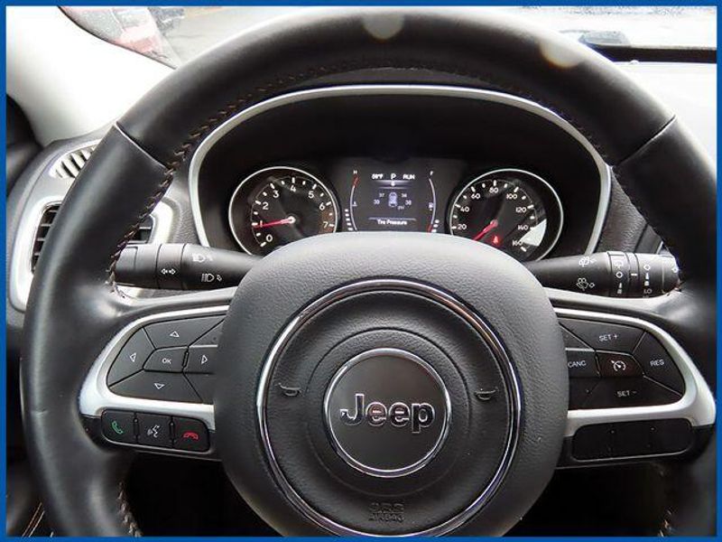 CARFAX One-Owner. Clean CARFAX. Diamond Black Crystal Pearlcoat 2019 Jeep Compass Latitude 4WD 9-Speed Automatic 2.4L I4 4WD, Diamond Black Crystal Pearlcoat, Black Cloth, 6 Speakers, All-Season Floor Mats, AM/FM radio: SiriusXM, Bi-Xenon HID Headlamps w/LED Signature, Blind Spot & Cross Path Detection, Cold Weather Group, Heated Front Seats, Heated Steering Wheel, LED Taillamps, ParkSense Rear Park Assist System, Premium Lighting Group, Quick Order Package 2GJ, Radio: Uconnect 4 w/7'' Display, Rain Sensitive/Intermittent Wipers, Reversible Carpet/Vinyl Cargo Mat, Safety & Security Group, Security Alarm, Windshield Wiper De-Icer.