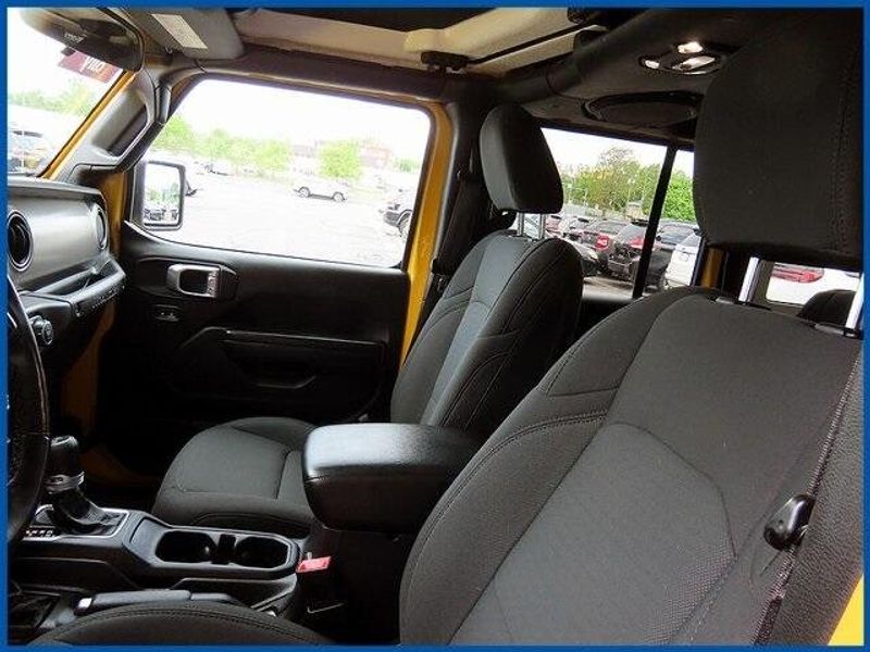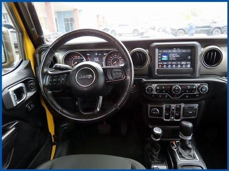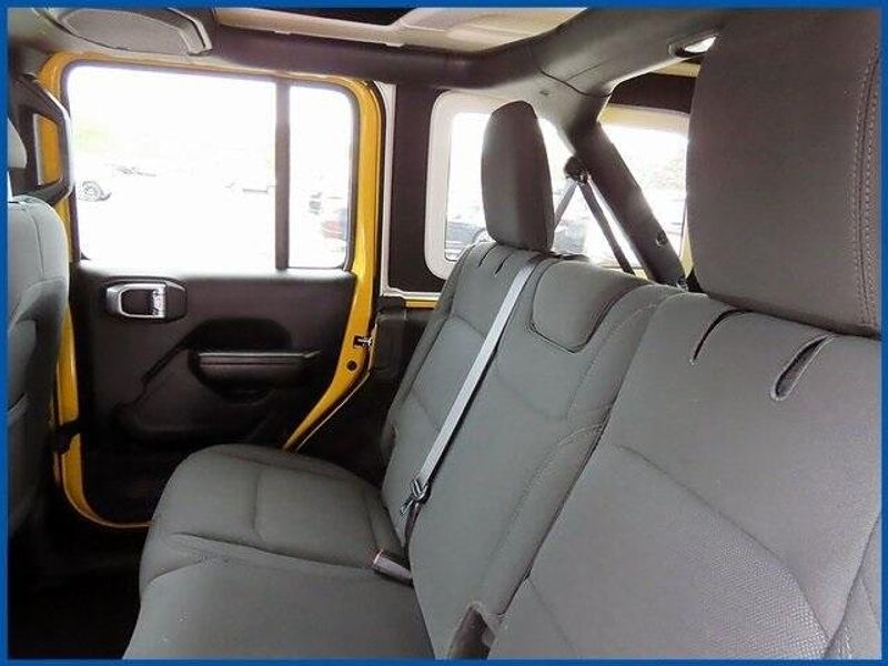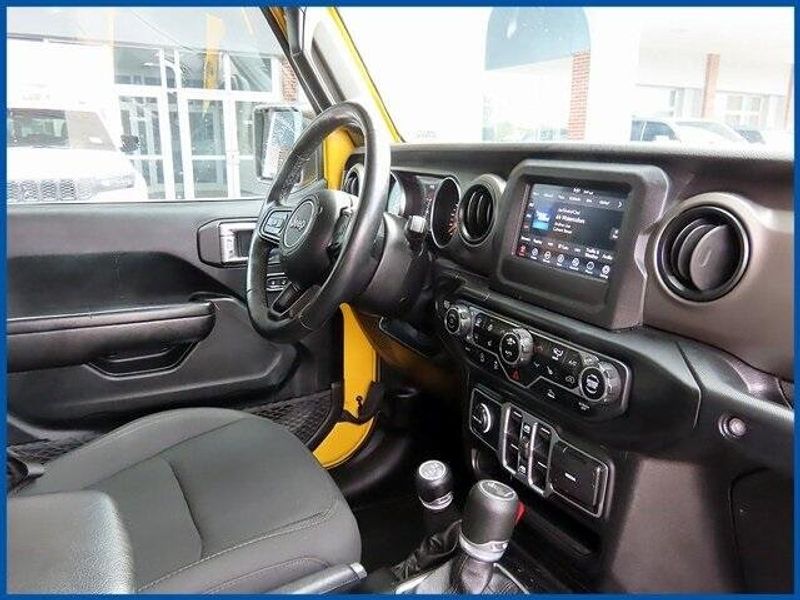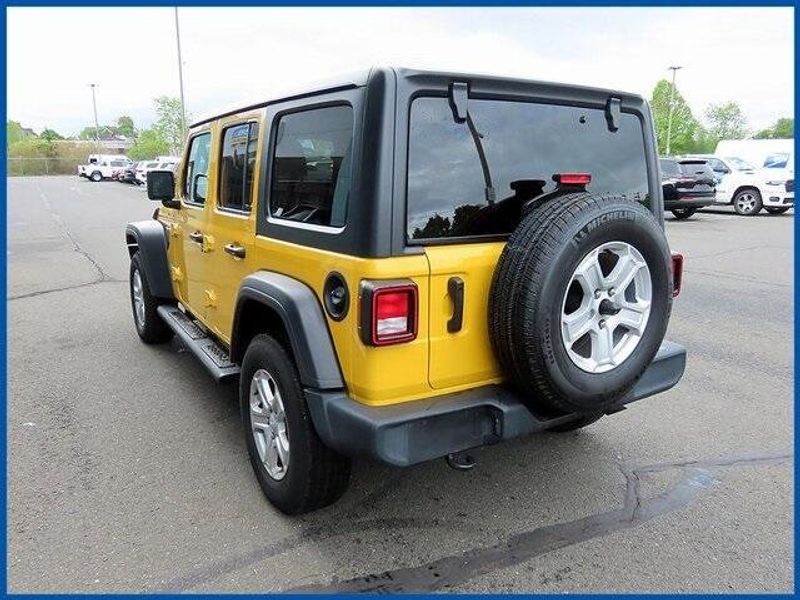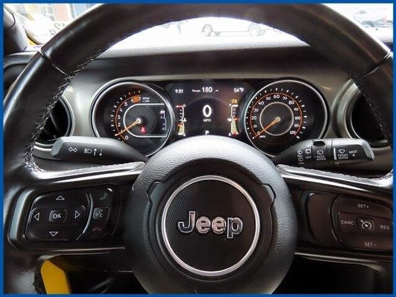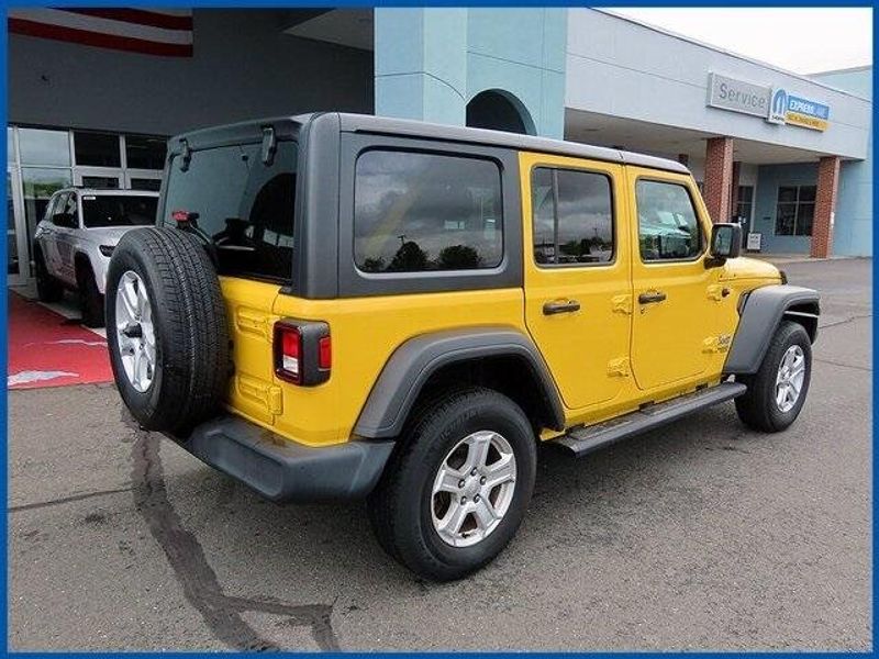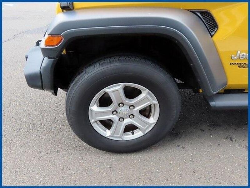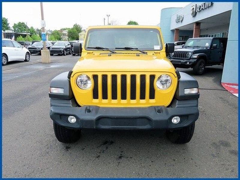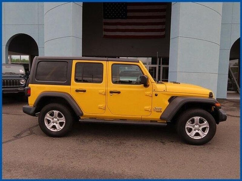 CARFAX One-Owner. Clean CARFAX. Baja Yellow Clearcoat 2021 Jeep Wrangler Unlimited Sport S 4WD 8-Speed Automatic 2.0L I4 DOHC 2.0L I4 DOHC, 7.0'' Touchscreen Display, 8 Speakers, Air Conditioning w/Auto Temperature Control, Air Filtering, Apple CarPlay, Automatic Headlamps, Cluster 7.0'' TFT Color Display, Cold Weather Group, Convenience Group, Deep Tint Sunscreen Windows, For More Info, Call 800-643-2112, Front 1-Touch Down Power Windows, Google Android Auto, GPS Antenna Input, Heated Front Seats, Heated Steering Wheel, Integrated Center Stack Radio, Leather Wrapped Steering Wheel, Power Heated Mirrors, Quick Order Package 22S Sport S, Radio: Uconnect 4 w/7'' Display, Remote Keyless Entry, Security Alarm, SiriusXM Radio Service, SiriusXM Satellite Radio, Speed Sensitive Power Locks, Sport S, Sun Visors w/Illuminated Vanity Mirrors, Technology Group, Universal Garage Door Opener, USB Host Flip, Wheels: 17'' x 7.5'' Tech Silver Aluminum.