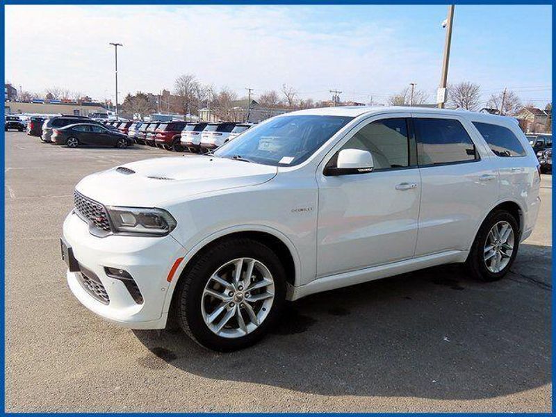 CARFAX One-Owner. Clean CARFAX. Certified. White Knuckle Clearcoat 2022 Dodge Durango R/T AWD 8-Speed Automatic HEMI 5.7L V8 Multi Displacement VVT HEMI 5.7L V8 Multi Displacement VVT, White Knuckle Clearcoat, Black Leather, #5 Seat Foam Cushion, 19 harman/kardon Amplified Speakers w/Subwoofer, 825 Watt Amplifier, Adaptive Cruise Control w/Stop, Advanced Brake Assist, AM/FM radio: SiriusXM w/360L, Floor Console w/Leather Armrest, Full Speed Forward Collision Warning Plus, Lane Departure Warning Plus, Leather Trimmed Bucket Seats, Leather Wrapped Door Panels, Navigation system: TomTom, Power Sunroof, Premium Instrument Panel, Quick Order Package 22C R/T Plus, Radio: Uconnect 5 Nav w/10.1'' Display, Suede Headliner, Ventilated Front Seats.