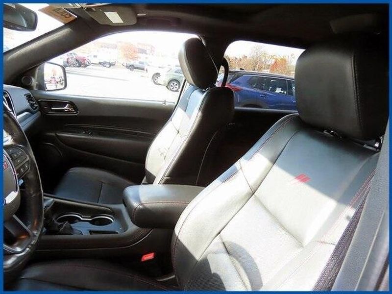 CARFAX One-Owner. Clean CARFAX. Certified. Destroyer Gray Clearcoat 2022 Dodge Durango R/T AWD 8-Speed Automatic HEMI 5.7L V8 Multi Displacement VVT HEMI 5.7L V8 Multi Displacement VVT, AWD, Destroyer Gray Clearcoat, #5 Seat Foam Cushion, 19 harman/kardon Amplified Speakers w/Subwoofer, 825 Watt Amplifier, Adaptive Cruise Control w/Stop, Advanced Brake Assist, Blacktop Package, Floor Console w/Leather Armrest, Full Speed Forward Collision Warning Plus, Gloss Black Badges, Gloss Black Exterior Mirrors, Lane Departure Warning Plus, Leather Trimmed Bucket Seats, Leather Wrapped Door Panels, Navigation system: TomTom, Power Sunroof, Premium Instrument Panel, Quick Order Package 22C R/T Plus, Satin Black Dodge Tail Lamp Badge, Suede Headliner, Ventilated Front Seats.