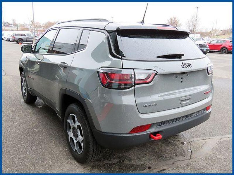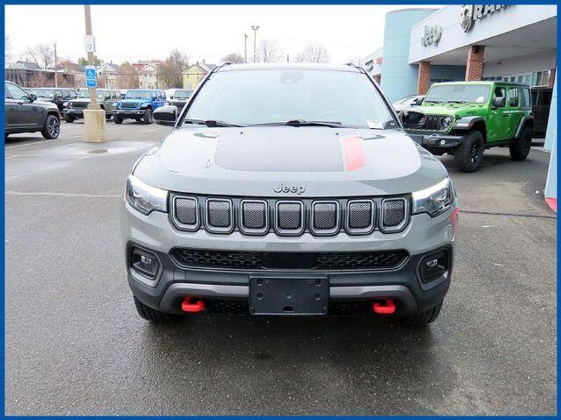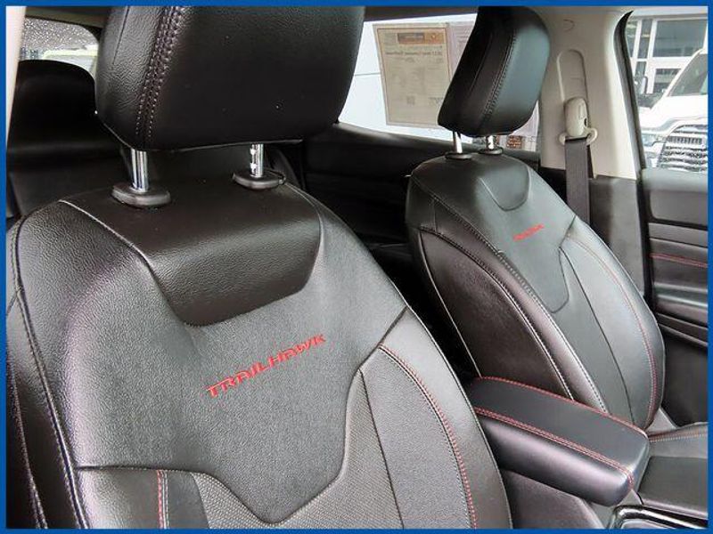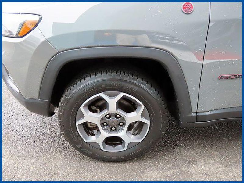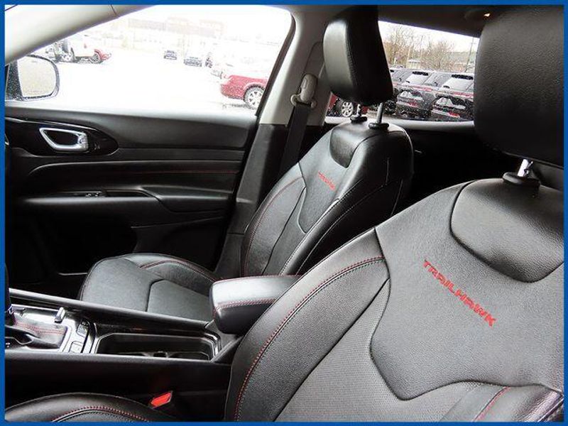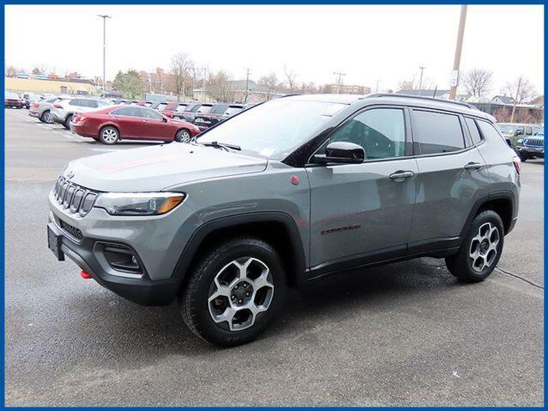 CARFAX One-Owner. Certified. Sting-Gray Clearcoat 2022 Jeep Compass Trailhawk 4WD 9-Speed 948TE Automatic 2.4L I4 2.4L I4, 4WD, Sting-Gray Clearcoat, Ruby Red/Black Leather, 2nd Row Heated Seats, 6 Speakers, Air Conditioning, AM/FM radio: SiriusXM, Automatic temperature control, Front Bucket Seats, Front dual zone A/C, GPS Navigation, Integrated Voice Command w/Bluetooth, Power 8-Way Adjust Front Passenger Seat, Power Adjust 8-Way Driver Seat, Power Front/Fixed Rear Full Sunroof, Premium Alpine Speaker System, Premium Leather Trimmed Bucket Seats, Quick Order Package 2GE, Rear window defroster, Split folding rear seat, Sun and Sound Group, Ventilated Front Seats.