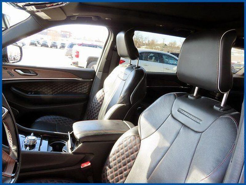 CARFAX One-Owner. Clean CARFAX. Certified. Diamond Black Crystal Pearlcoat 2022 Jeep Grand Cherokee L Summit 4WD 8-Speed Automatic HEMI 5.7L V8 Multi Displacement VVT 4D Sport Utility, HEMI 5.7L V8 Multi Displacement VVT, 8-Speed Automatic, 4WD, Diamond Black Crystal Pearlcoat, 10 Speakers, 3rd row seats: split-bench, Advanced Protech Group IV, Air Conditioning, Alloy wheels, Automatic temperature control, Conventional Differential Rear Axle, Electronic Limited Slip Differential Delete, Front dual zone A/C, Heads-Up Display, Heated front seats, Heated rear seats, Interior Rear Facing Camera, Navigation System, Night Vision/Pedestrian-Animal Detection, Power Fold Seatbacks, Power Liftgate, Power moonroof, Quick Order Package 25S, Radio: Uconnect 5 Nav w/10.1'' Display, Rear air conditioning, Rear dual zone A/C, Rear window defroster, Rearview Autodim Digital Display Mirror.