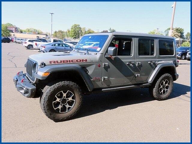 CARFAX One-Owner. Certified. Sting-Gray Clearcoat 2022 Jeep Wrangler Unlimited Rubicon 4WD 6-Speed Manual 3.6L V6 24V VVT Wrangler Unlimited Rubicon, 3.6L V6 24V VVT, Sting-Gray Clearcoat, Black Leather, 240 Amp Alternator, 7 & 4 Pin Wiring Harness, 700 Amp Maintenance Free Battery, 9 Speakers, Advanced Brake Assist, Advanced Safety Group, Air Conditioning, AM/FM radio: SiriusXM, Auto High Beam Headlamp Control, Auxiliary Switches, Blind Spot & Cross Path Detection, Cargo Compartment Floor Mat, Class II Receiver Hitch, Cold Weather Group, Daytime Running Lamps LED Accents, Front LED Fog Lamps, Full Speed Forward Collision Warning Plus, Heated Front Seats, Heated Steering Wheel, LED Lighting Group, LED Premium Reflector Headlamps, LED Taillamps, Navigation System, ParkSense Rear Park Assist System, Power steering, Power windows, Quick Order Package 23R, Radio data system, Radio: Uconnect 4C Nav w/8.4'' Display, Remote keyless entry, Safety Group, Steel Bumper Group, Steel Front Bumper, Steel Rear Bumper, Steering wheel mounted audio controls, Trail Rail Management System, Trailer Tow & HD Electrical Group.